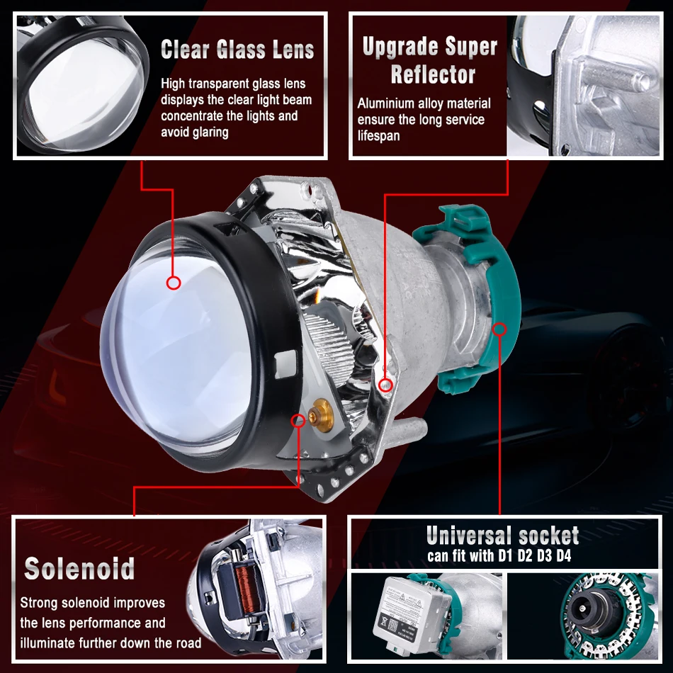 Этот Сменный объектив проектора является лучшим вариантом для модернизации автомобилей, которые поставляются с более старыми 3 "биксеноновыми проекторами HID или галогенными проекторами, и он также идеально подходит для традиционной модернизации.