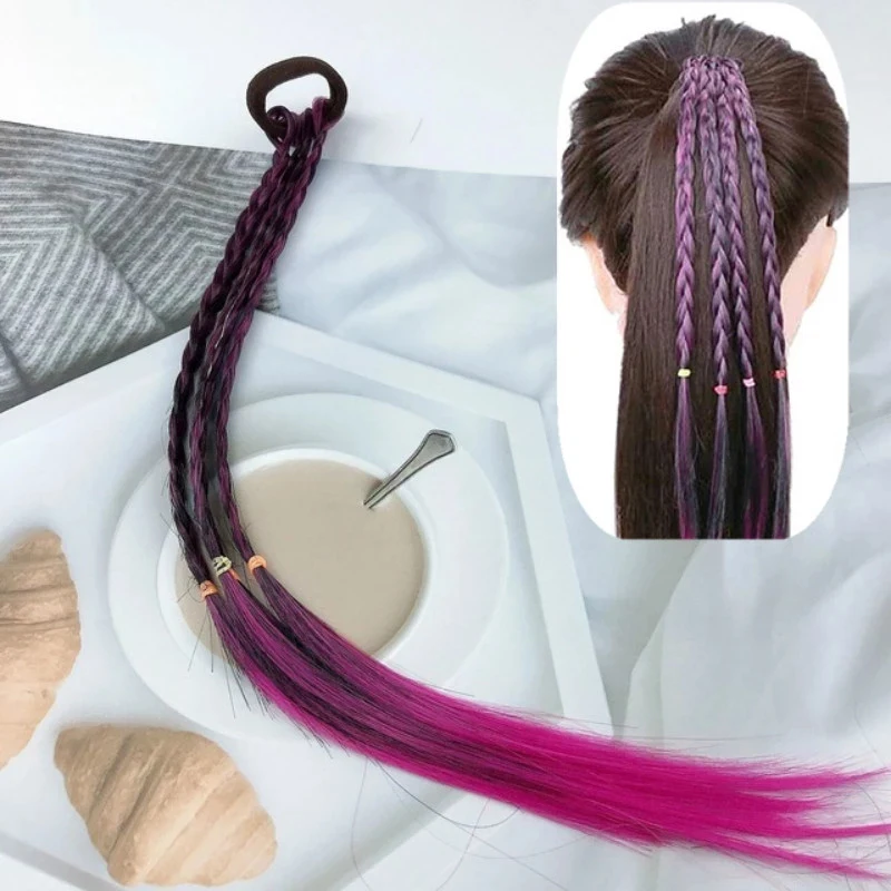Плетеная веревка для волос, парик с конским хвостом, градиентная эластичная резинка для волос, милые крутые аксессуары для укладки волос для девочек и женщин