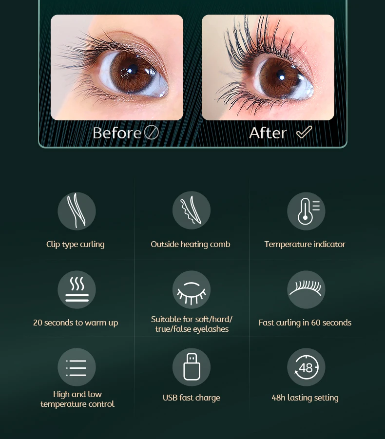 Электрические бигуди для ресниц, Быстрое нагревание, утюжок, регулируемая температура, натуральные ресницы, ресницы для макияжа, ручка для завивки, зарядка через USB