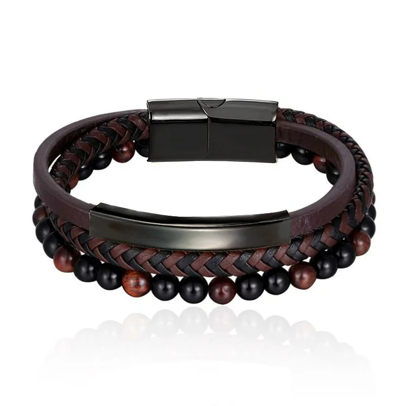 Отзывы о Мужской плетеный браслет из натуральной кожи с магнитной застежкой тигровый