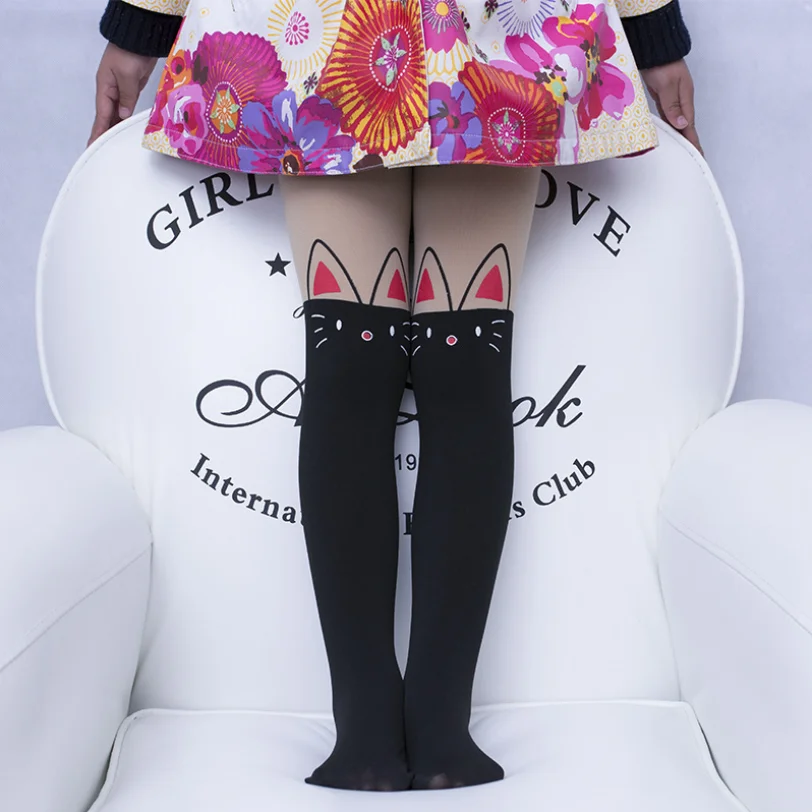 Тонкие колготки детские колготки для девочек 2-12 лет, бархатные колготки до колена, белые колготки для девочек с котенком из мультфильма, колготки для девочек