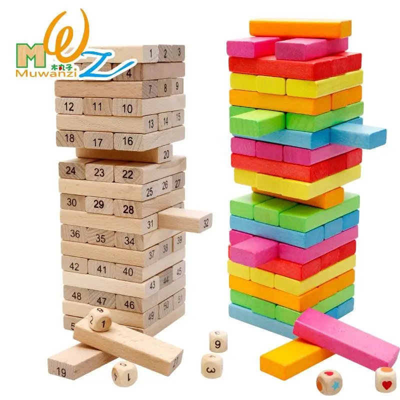 Отзывы о 54 шт./лот деревянные радужные высокие стены домино доска Дженга игра игрушки
