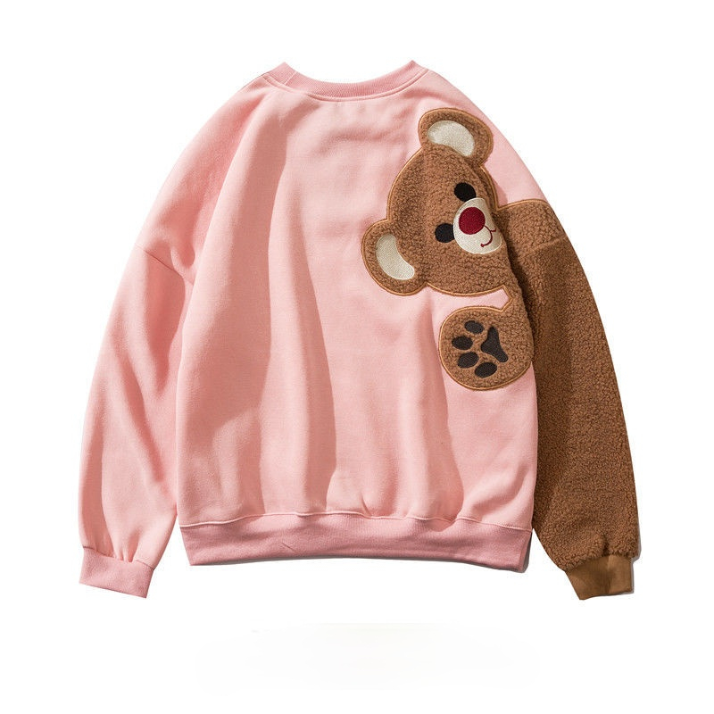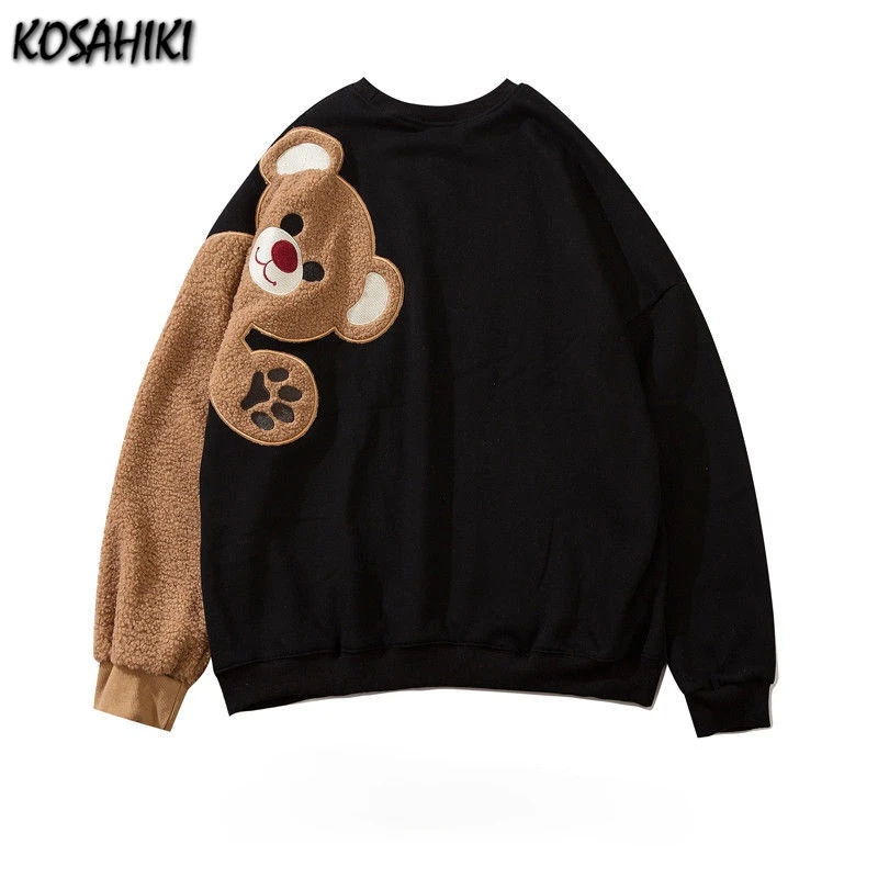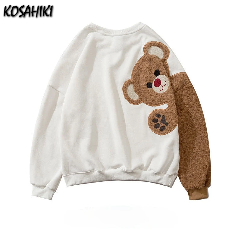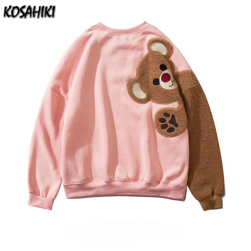 Женская флисовая толстовка на молнии KOSAHIKI Harajuku с принтом медведя из мультфильма, Повседневная Свободная уличная толстовка с капюшоном и карманами, 11a183