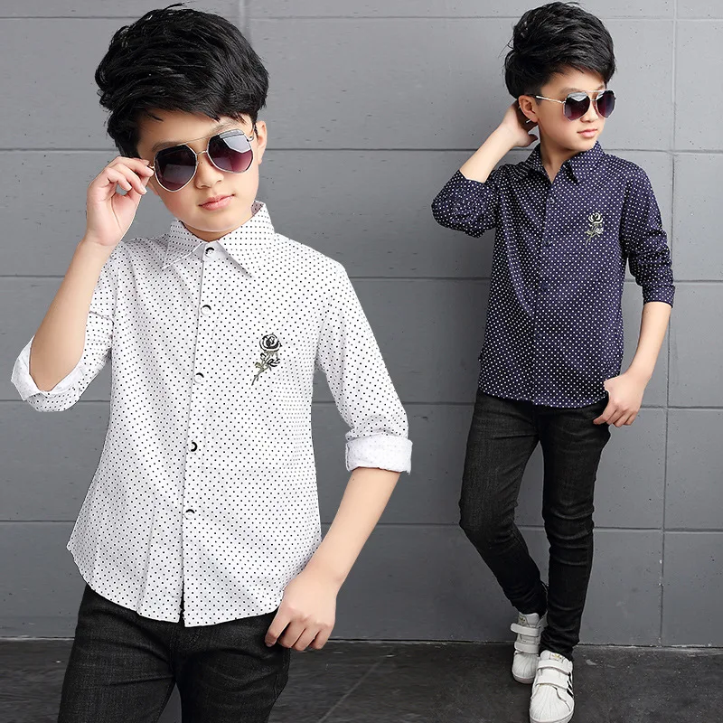 Отзывы о Рубашка для мальчиков весенняя темно-синяя в горошек с длинным рукавом