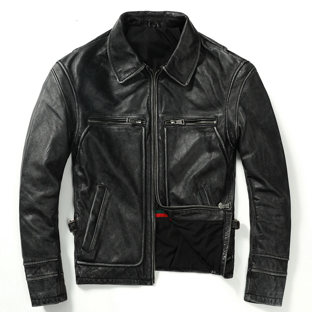 Отзывы о Мужская кожаная куртка байкерская из 100% натуральной воловьей кожи 3 цвета для