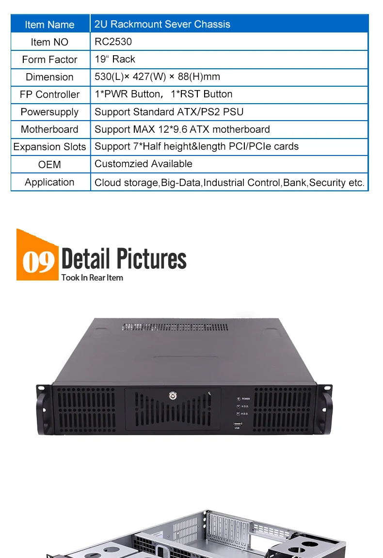 2U шасси с креплением на стойку для ATX, совместимо с серверами, полудлина PCI PCIe, расширенные слоты для карт