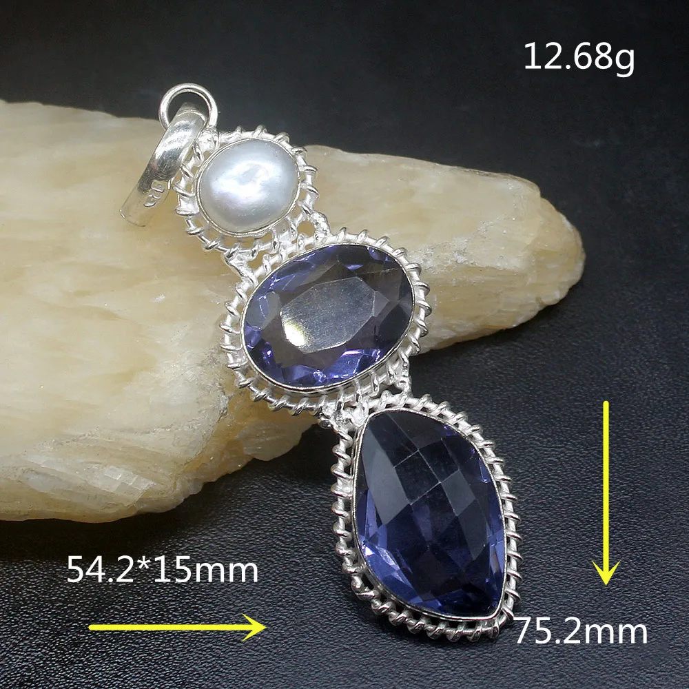 Ювелирные изделия Gemstonefactory большая акция серебро 925 пробы специальный Фиолетовый аметист белый жемчуг женское ожерелье для подарков Кулон 1286