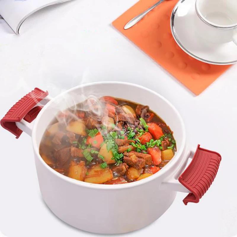 Высокая термостойкость: силиконовые чехлы-держатели с горячей ручкой и крышки могут защитить руки от ожогов высокой температуры, не легко отвалиться и могут быть плотно закреплены, обеспечивают большую безопасность.