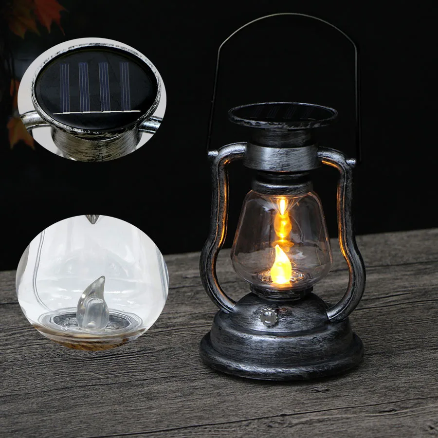 Подвесной светильник на солнечной батарее, ретро античный светодиодный фонарь с мерцающим пламенем, уличный водонепроницаемый ночсветильник для кемпинга, фонарь для сада, стола