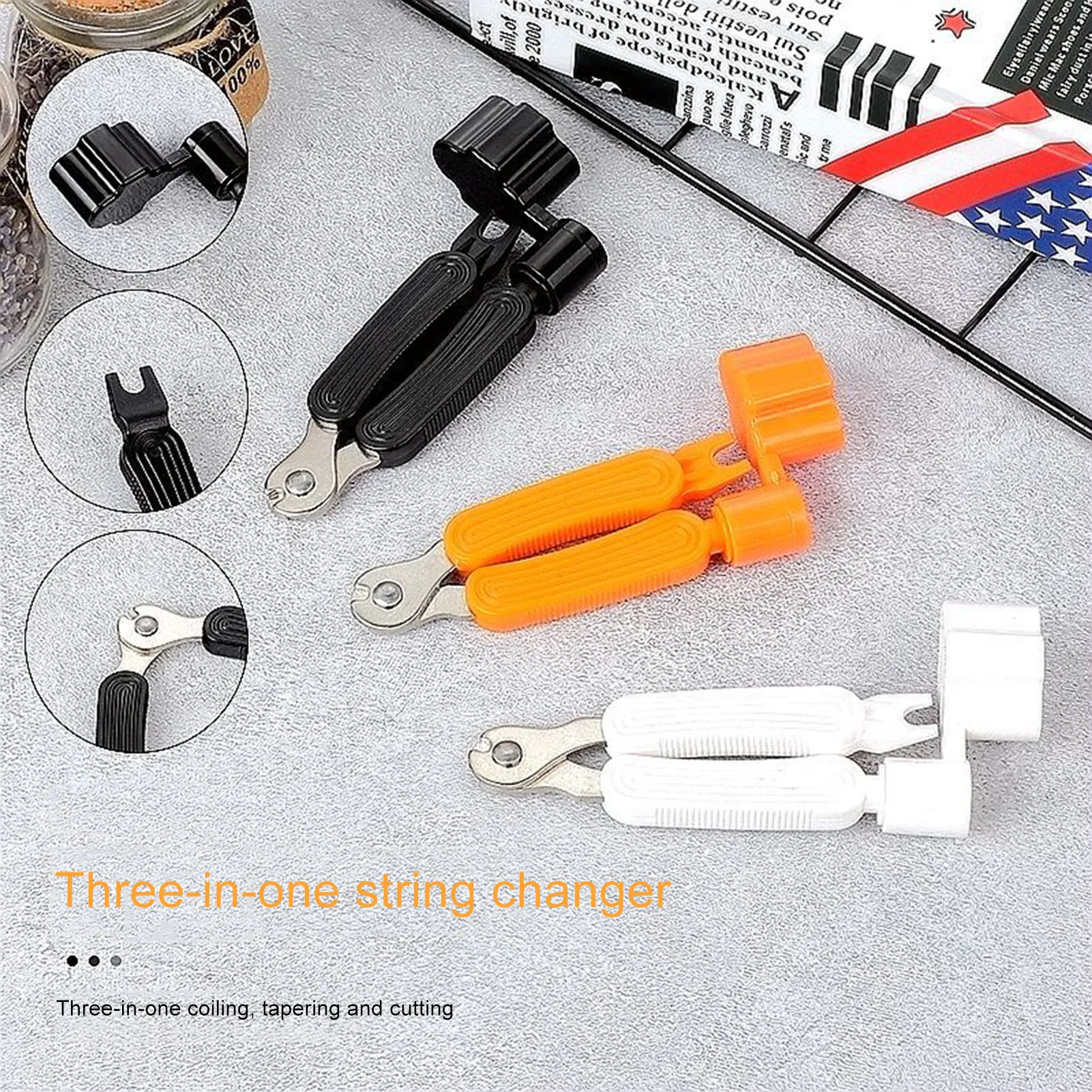 3-в-1 гитарная струна с резьбовой головкой, режущий инструмент в виде гитары струйный намотчик/мост булавки съемник/строка резак для акустической гитары бас-гитара укулеле