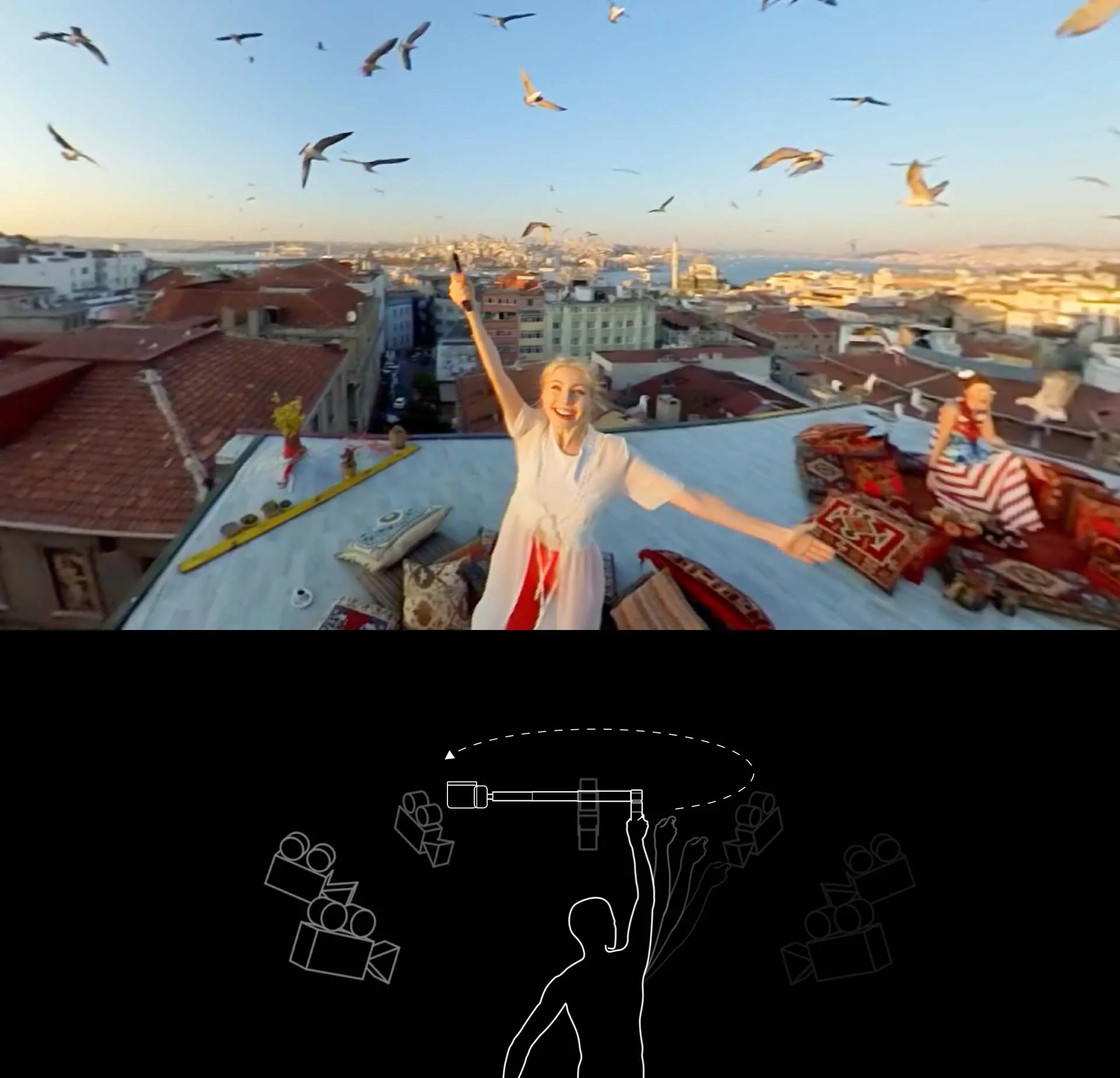ONE R's Invisible Selfie Stick feature lets you capture easy aerial angles and unique third-person perspectives with a flick of the wrist while using the Dual-Lens 360 Mod.