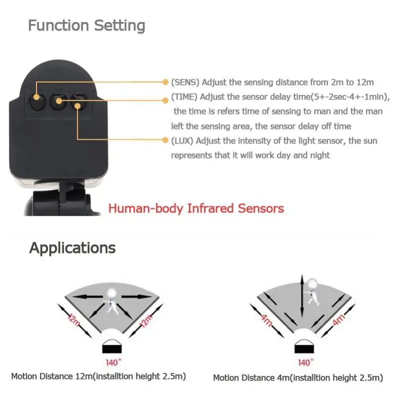 -Отрегулируйте положение «солнце», датчик будет работать как днем, так и ночью.