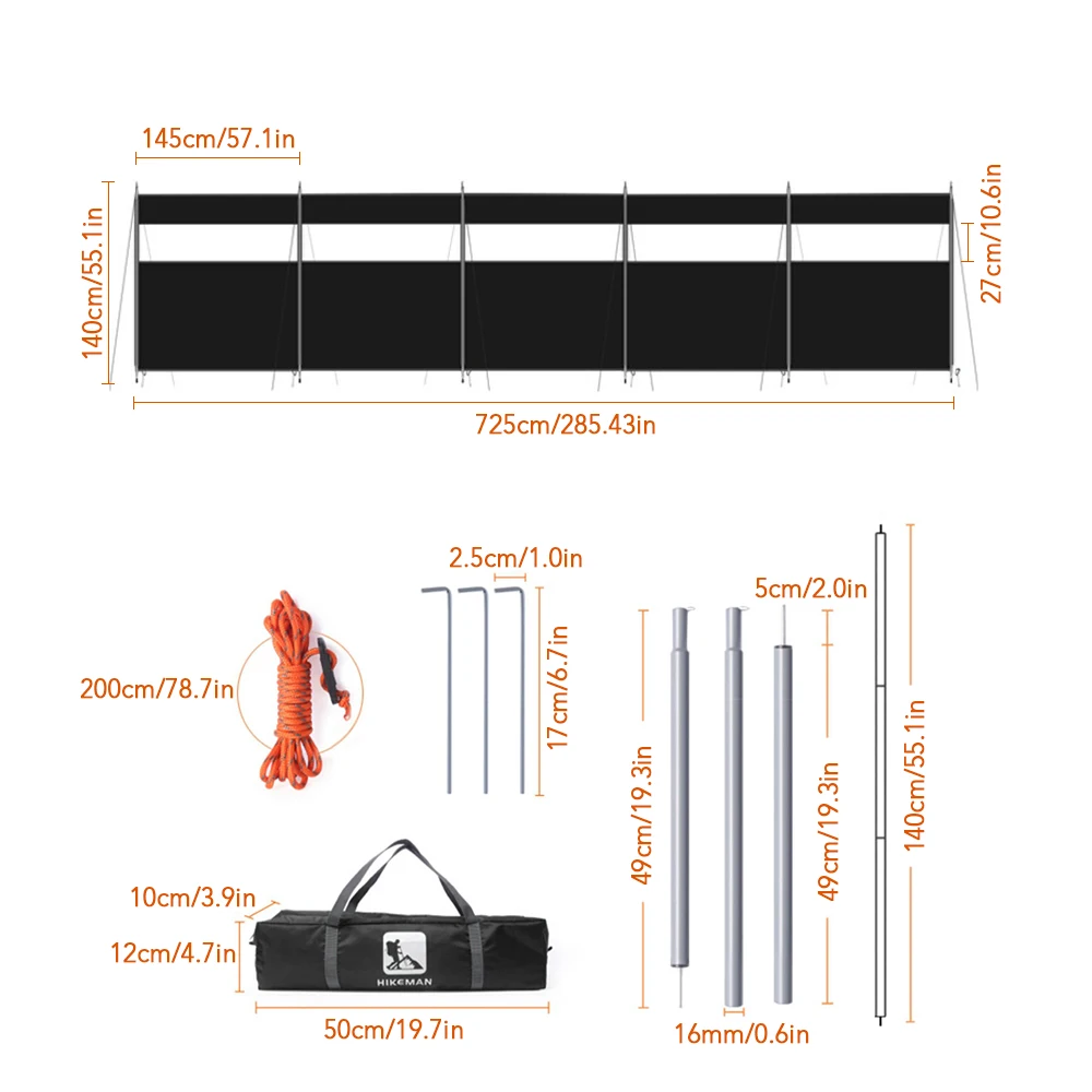 Размеры 173,2x51,2 '', достаточно большие для защиты от ветра на открытом воздухе.