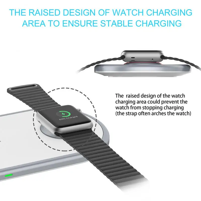 Высокая выпуклая конструкция, чтобы предотвратить зарядку часов (на рынке есть много плоских моделей, которые непосредственно утоплены, потому что ремешок часов находится в согнутом состоянии сразу после того, как часы сняты, и изогнутый ремешок часов, скорее всего, поднимет поверхность и заставит заряд ломаться).