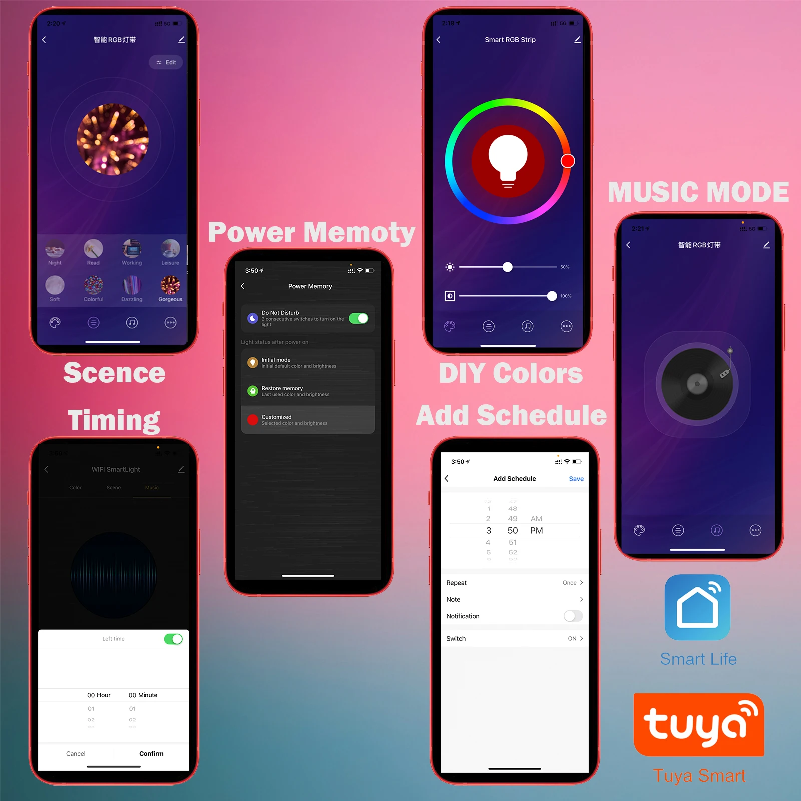 -Поддержка цветопередачи RGB с помощью вашего смартфона, вы можете персонализировать свои любимые цвета и настроить яркость на основе ваших потребностей. В то же время вы также можете настроить графики для включения/выключения в соответствии с заданным временем.