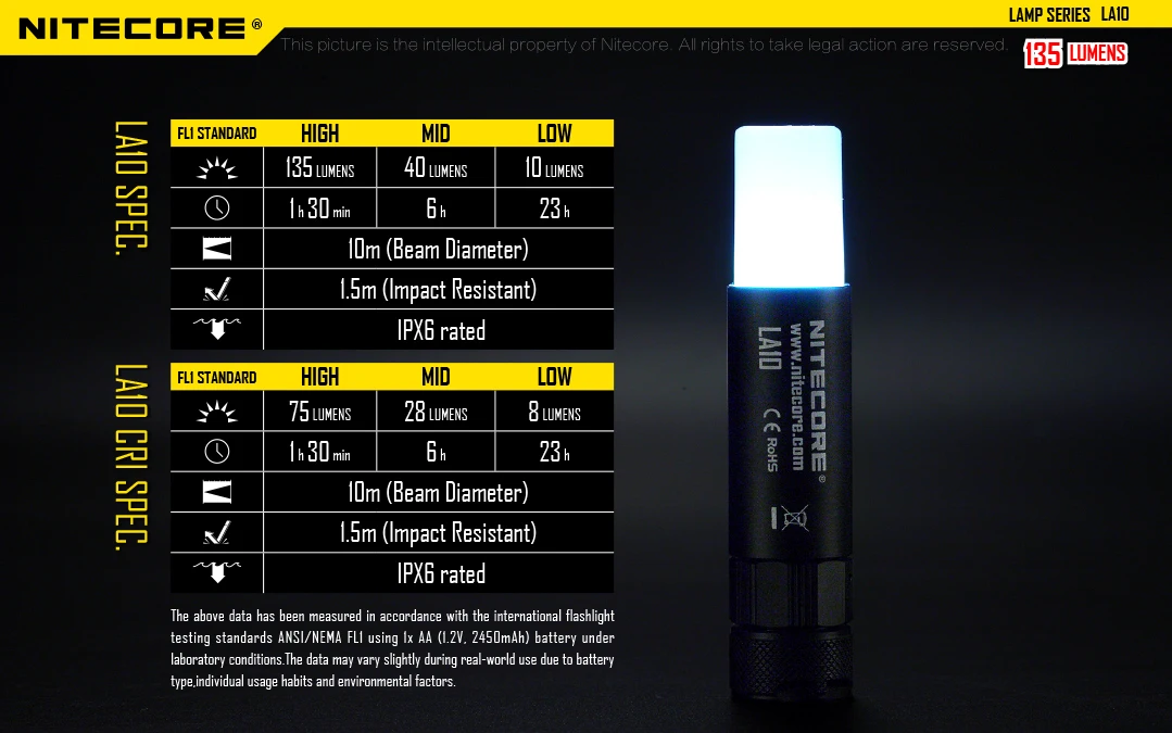 • Мини-фонарь NITECORE LA10 обеспечивает высокую производительность при сверхкомпактном корпусе из губной помады на 360 градусов.