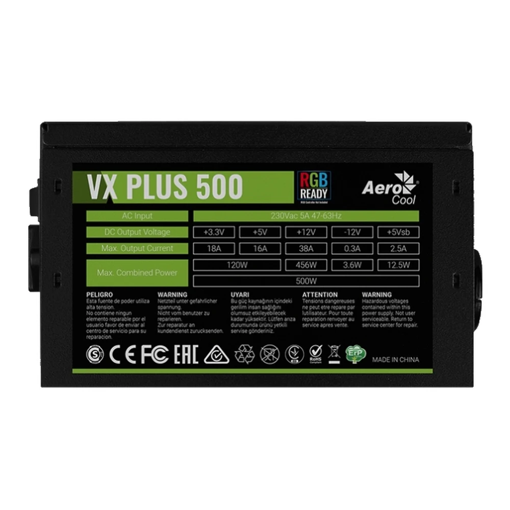 Отзывы о Блок питания 500W Aerocool VX PLUS 500 RGB (ATX v2.3/RGB Fan 120mm/ 500mm cable/Retail) (4718009152687) | Компьютеры и офис