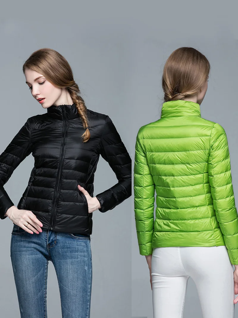 Женское зимнее пальто, ультра-светильник, пуховик, белый утиный пух, куртка с длинным рукавом, теплое пальто, парка, Женская однотонная портативная верхняя одежда