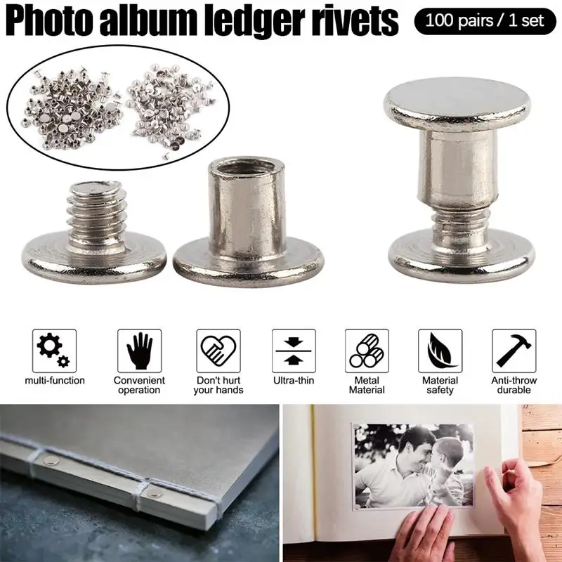 100 пар никелевого переплета, винты Chicago, заклепки для ногтей для книги, фотоальбома, кожаный бумажник для рукоделия, заклепки m5x6 мм
