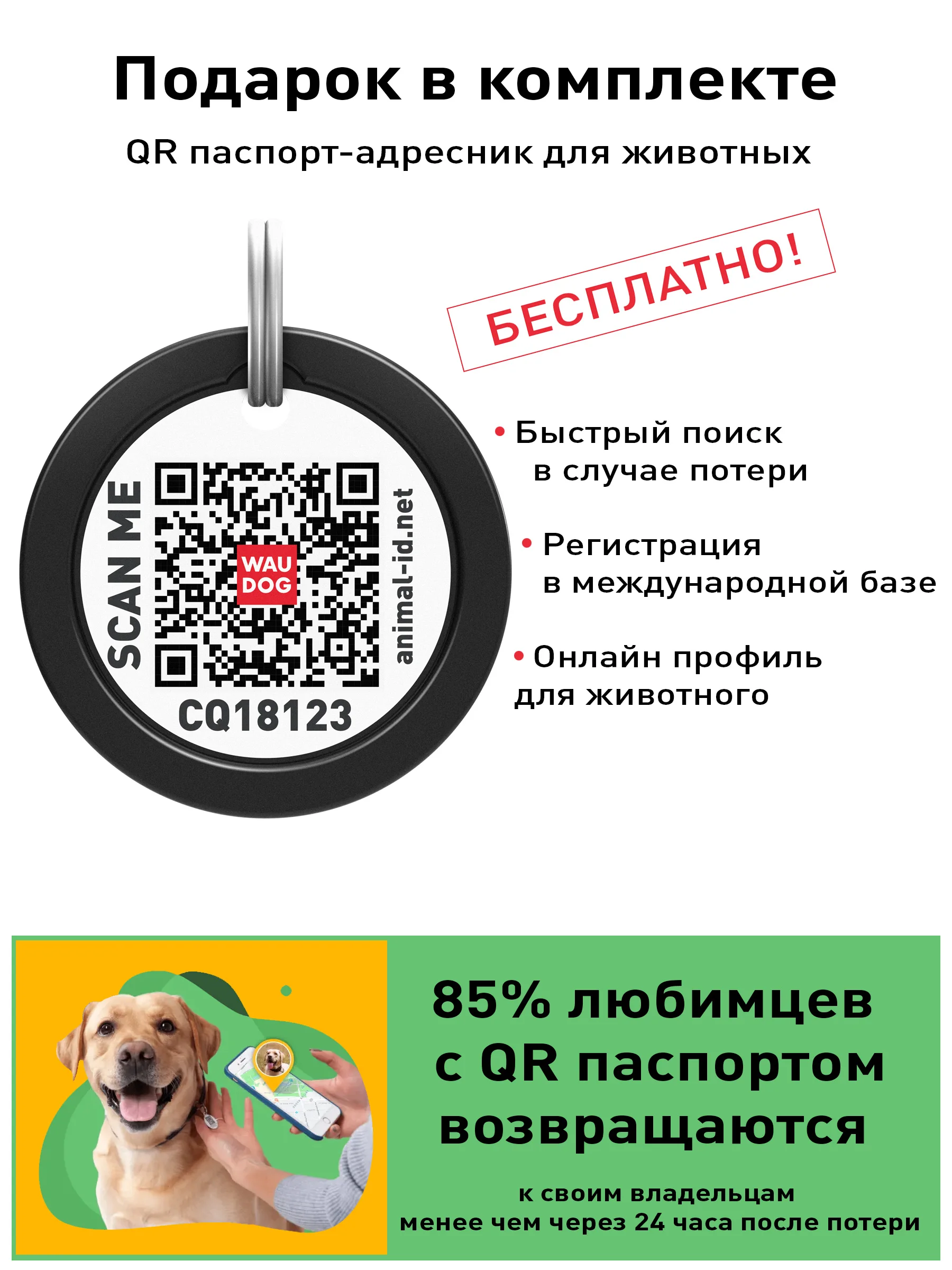 ✓Наличие «умного» адресника с QR паспортом
