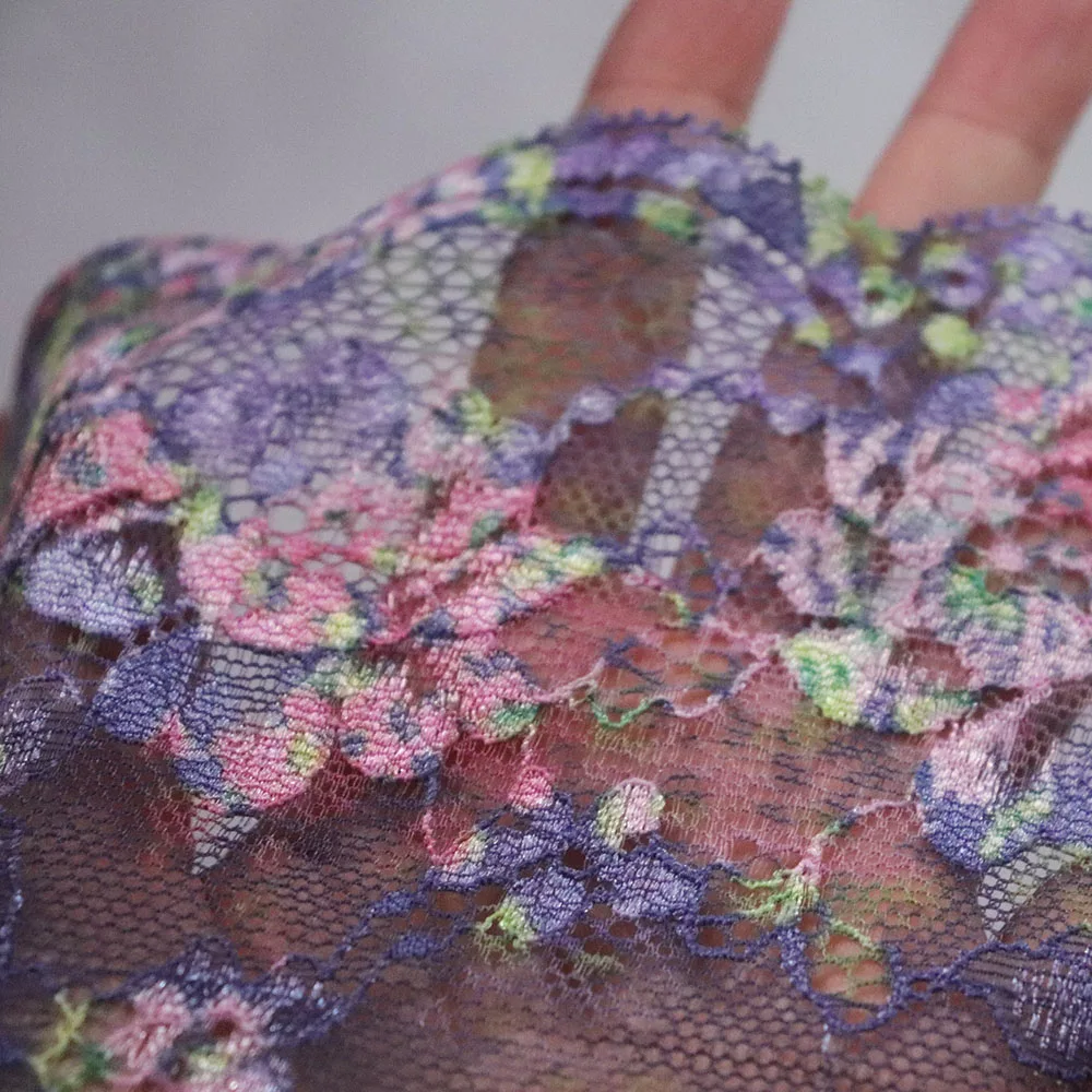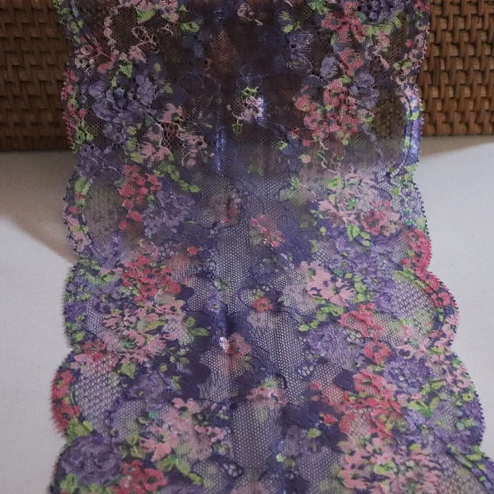 Эластичное кружево, 3 ярда, 18 см, темно-фиолетовый, розовый, зеленый