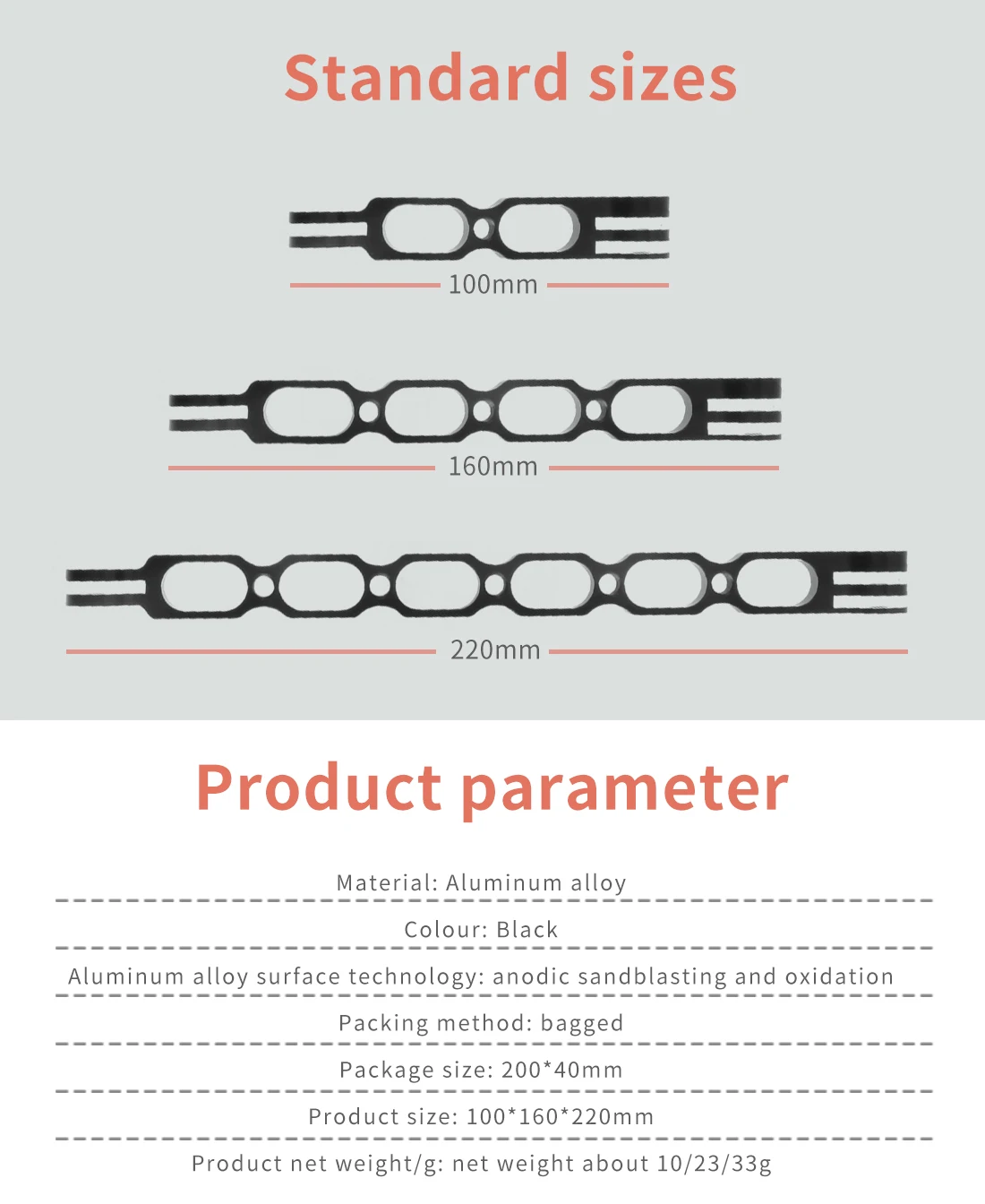 Длина изделия: 220 мм (8,66 дюймов)/160 мм (6,3 дюймов)/100 мм (3,94 дюймов)