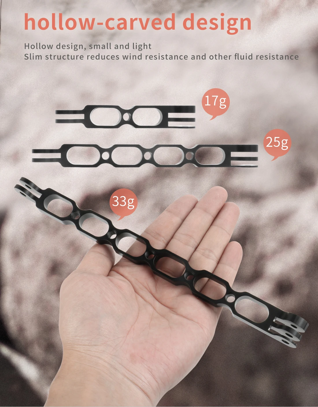 Новый изогнутый дизайн удобнее держать, и он может значительно уменьшить сопротивление ветра при езде и улучшить стабильность съемки.