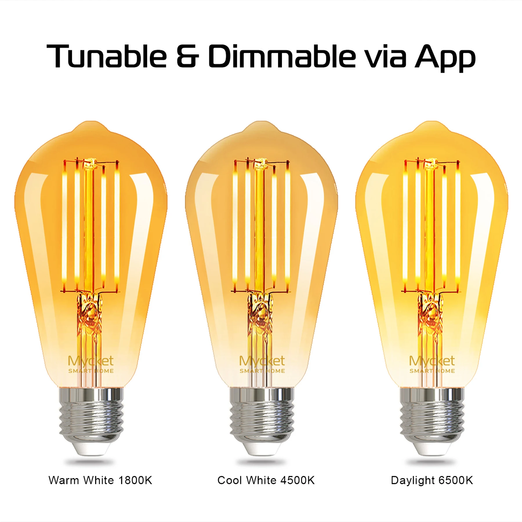 ●Светильник свой путь: Адаптируйте свою атмосферу освещения в каждой комнате-Используйте приложение, чтобы автоматически затемнить винтажную лампу Эдисона для романтического ужина или осветить лампу для работы в офисе или на кухне. Сделайте больше с вашим освещением. Затемняемый и настраиваемый от теплого белого 1800-кельвина до дневного света 6500-кельвина.