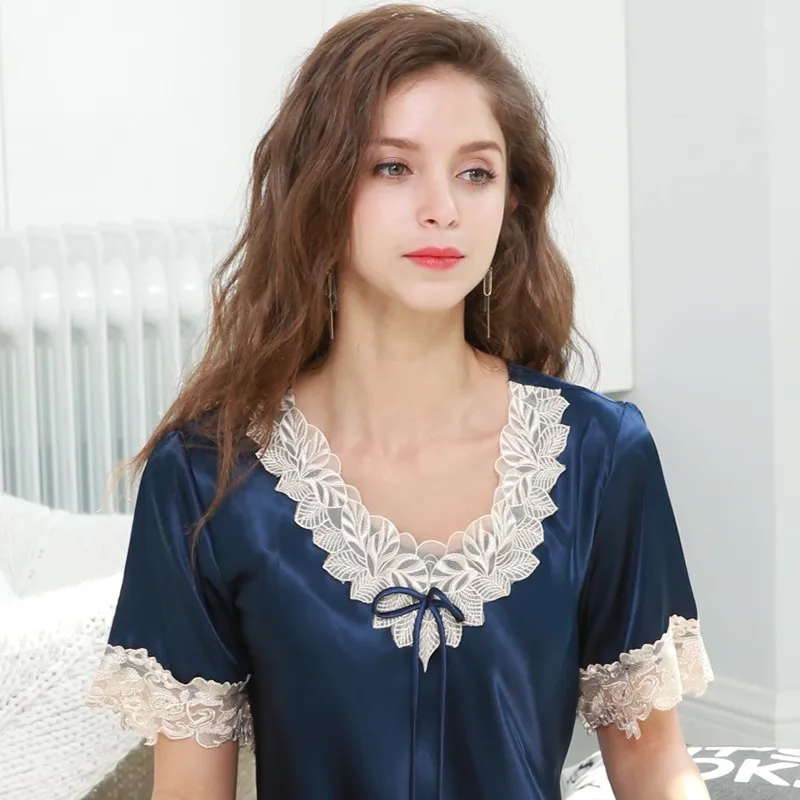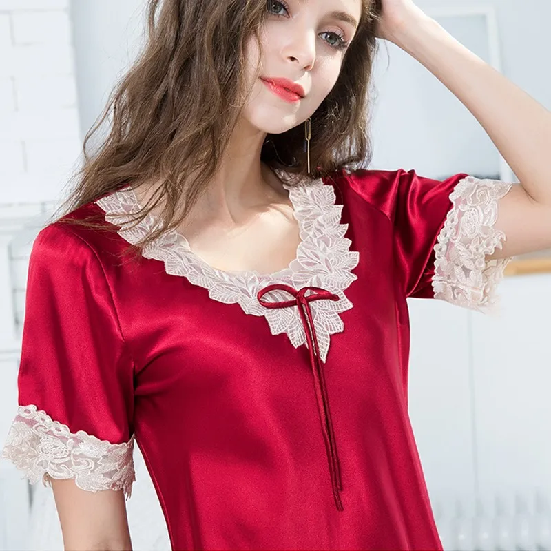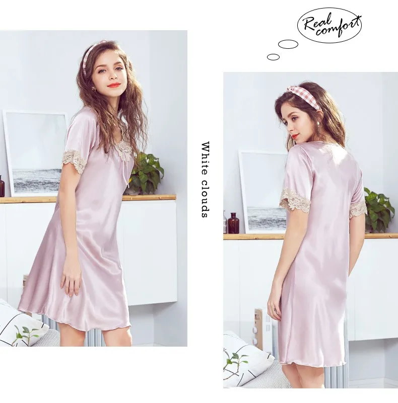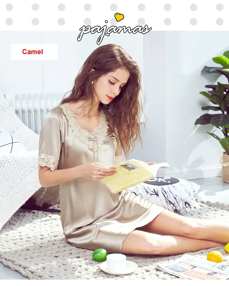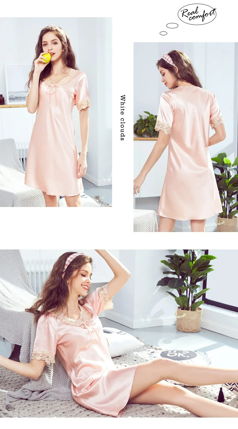 Отзывы о Новая летняя ночная рубашка из искусственного шелка женская Повседневная Ночная