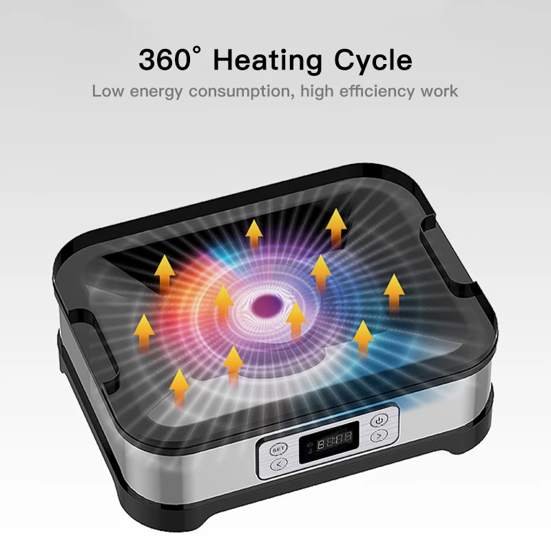 4. Поскольку сетка является равномерной, нет необходимости вращать еду. Требуемая температура может непрерывно регулироваться от 35 до 70 °C