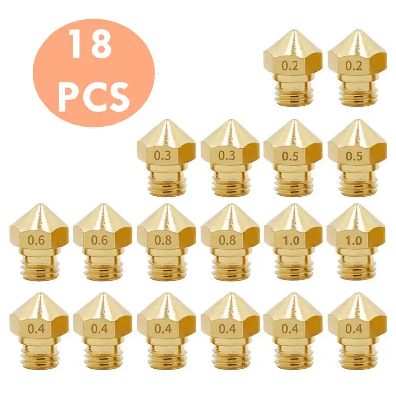 18 шт. 3D принтер M7 MK10 латунный экструдер головка Hotend сопло 0,2 мм 0,3 мм 0,4 мм 0,5 мм 0,6 мм 0,8 мм 1,0 мм подходит 1,75 мм нить D4/I3 Makerbot 2