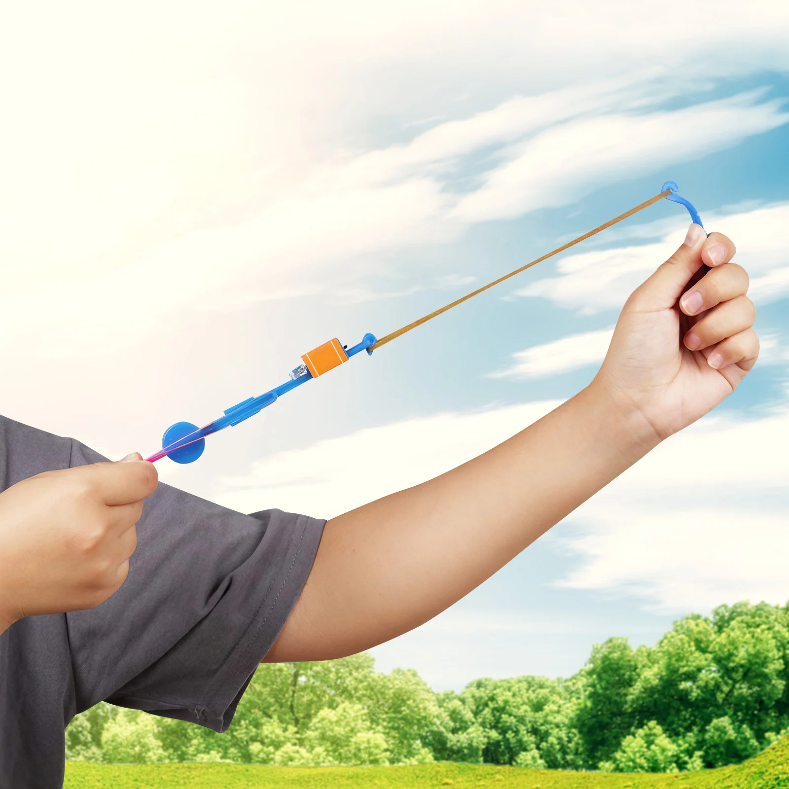 Это простая летающая игрушка, которая использует эластичную резиновую ленту для извлечения, и может лететь до десятков метров на небесах с умелой работой.