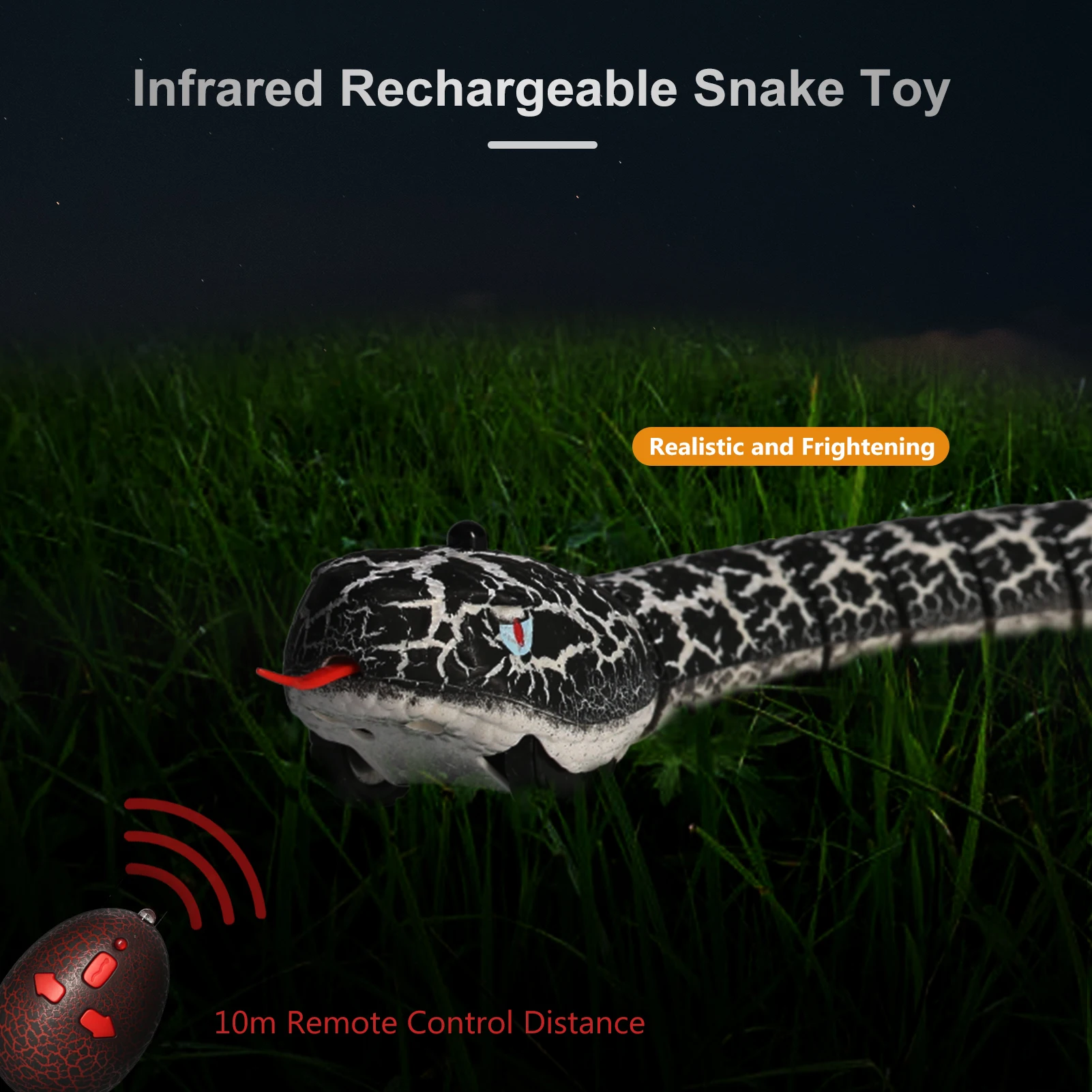 Похожая на настоящую визуальные эффекты: похожая на настоящую ABS корпус текстура делает радиоуправляемая игрушка "Змея" шикарно выглядеть похожая на настоящую, выдвижной язык и качающимся хвостом делают игрушку более реалистичные при использовании дистанционный пульт, сегментированные тела делает игрушку обладают отличными скользя.