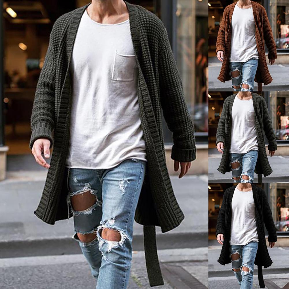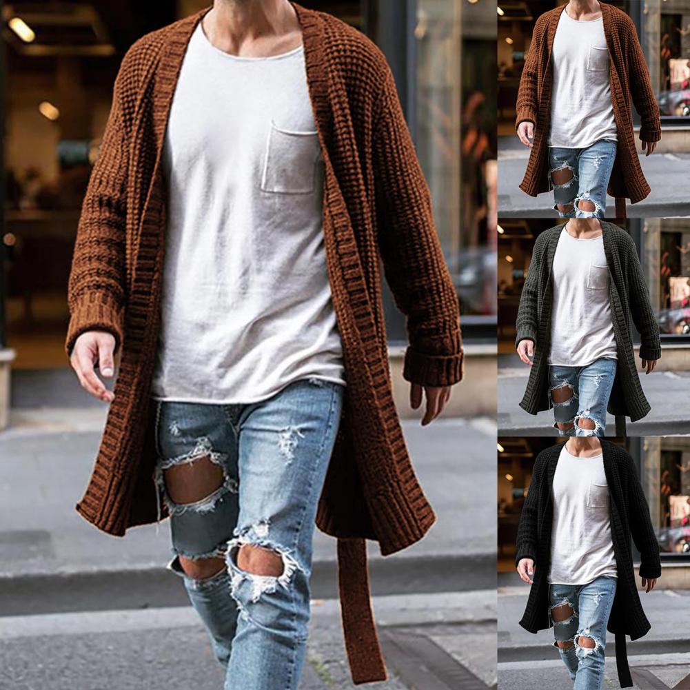 Этот длинный кардиган для мужчин изготовлен из вязаного акрилового волокна, который может держать вас в тепле в холодные дни.