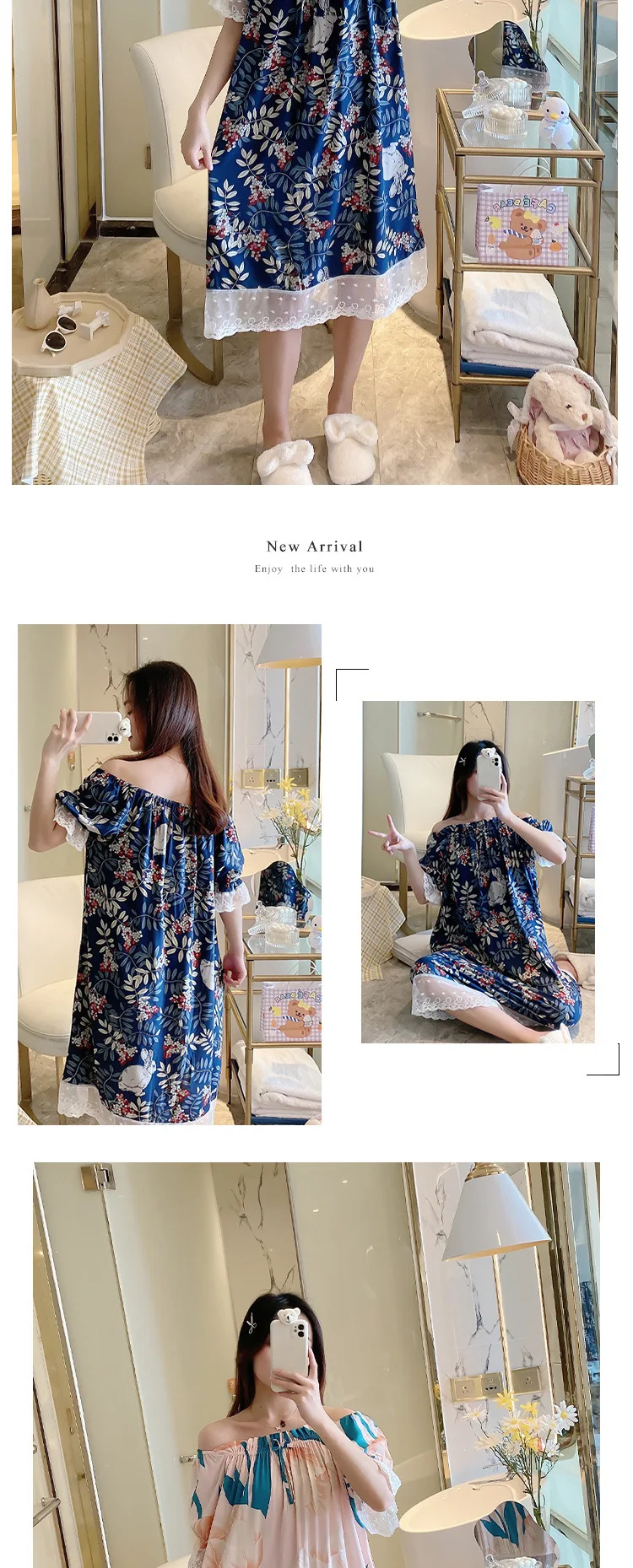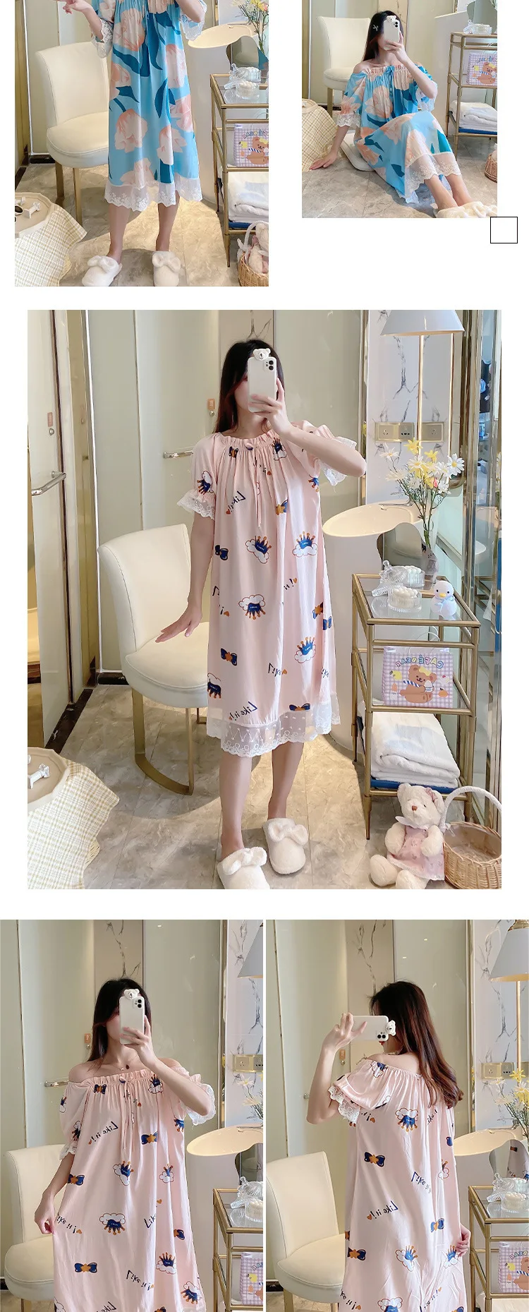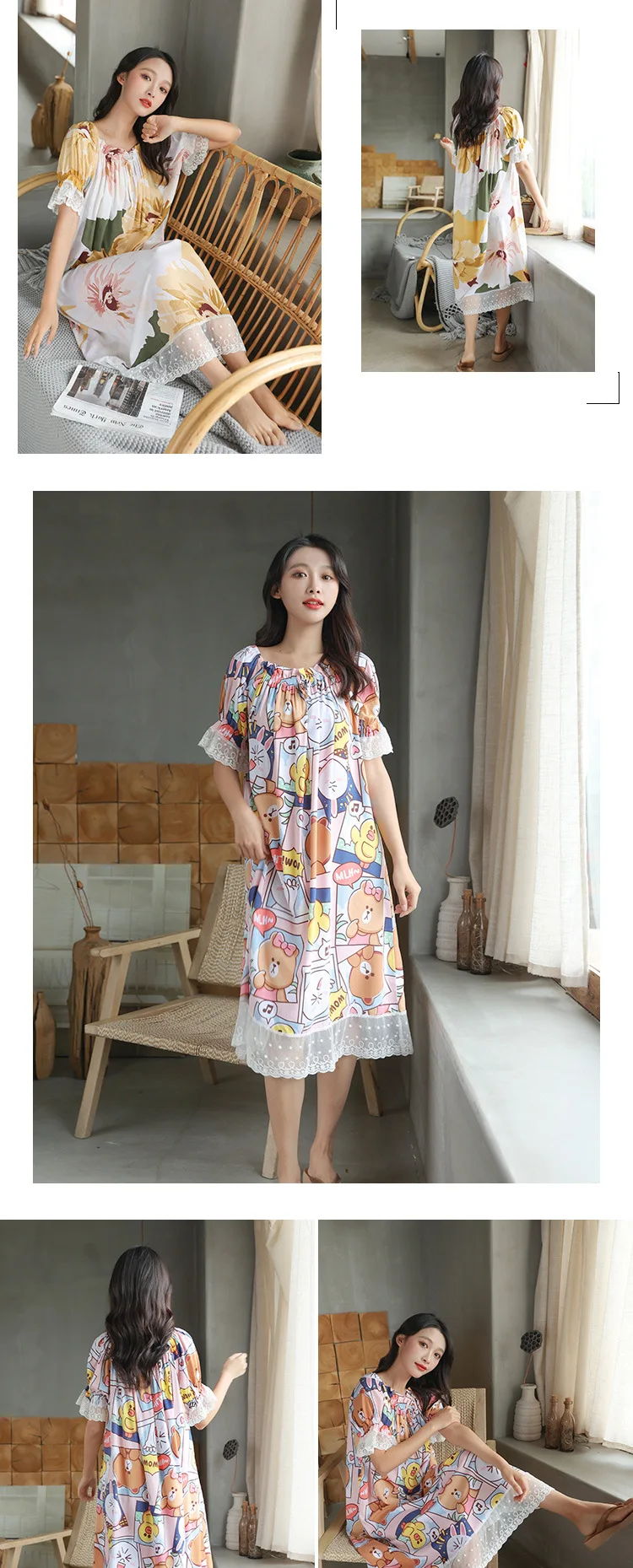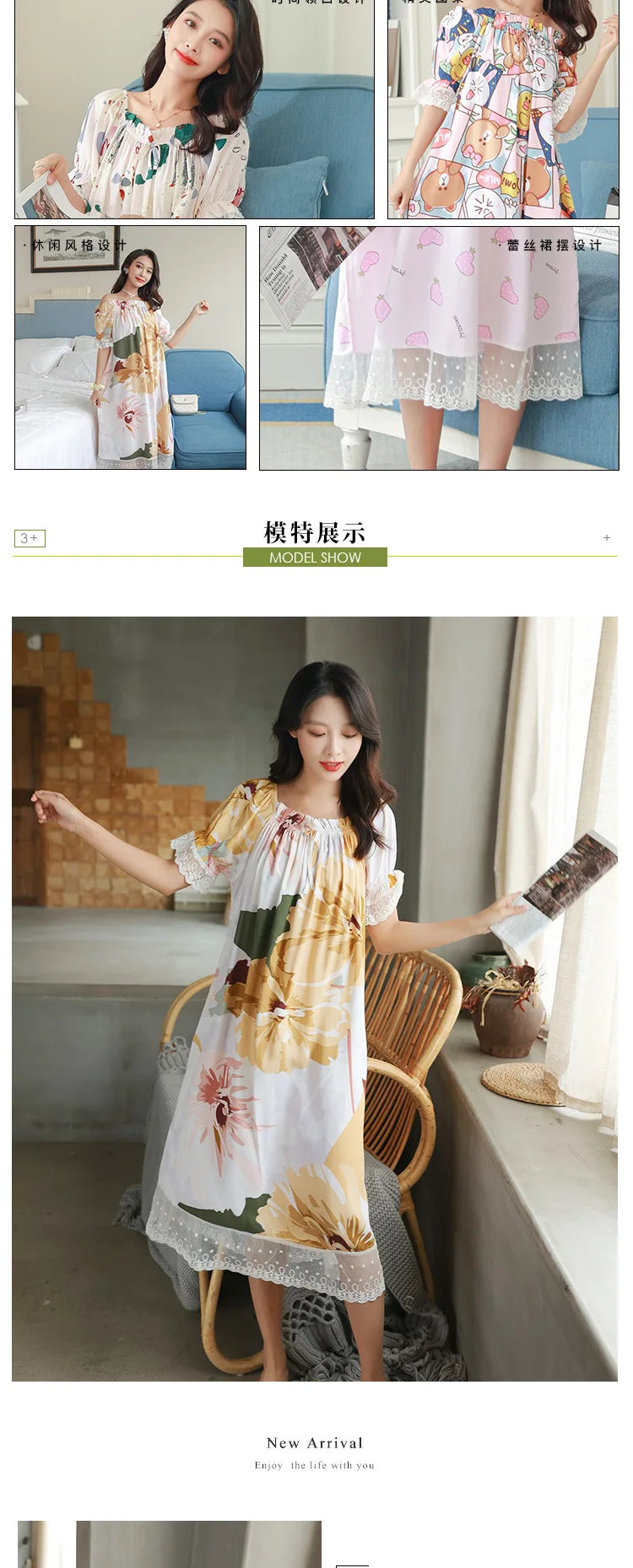 Отзывы о Летняя Милая Корейская шелковая хлопковая ночная рубашка с короткими рукавами