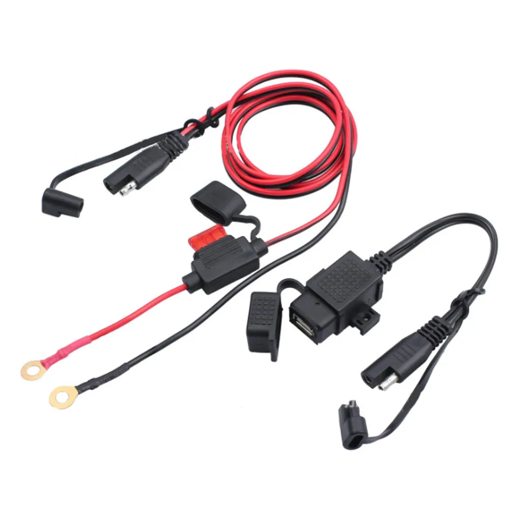 Он может непосредственно питаться от существующей розетки SAE вашего мотоцикла или получать питание от аккумулятора путем подключения к кольцевому удлинительному кабелю