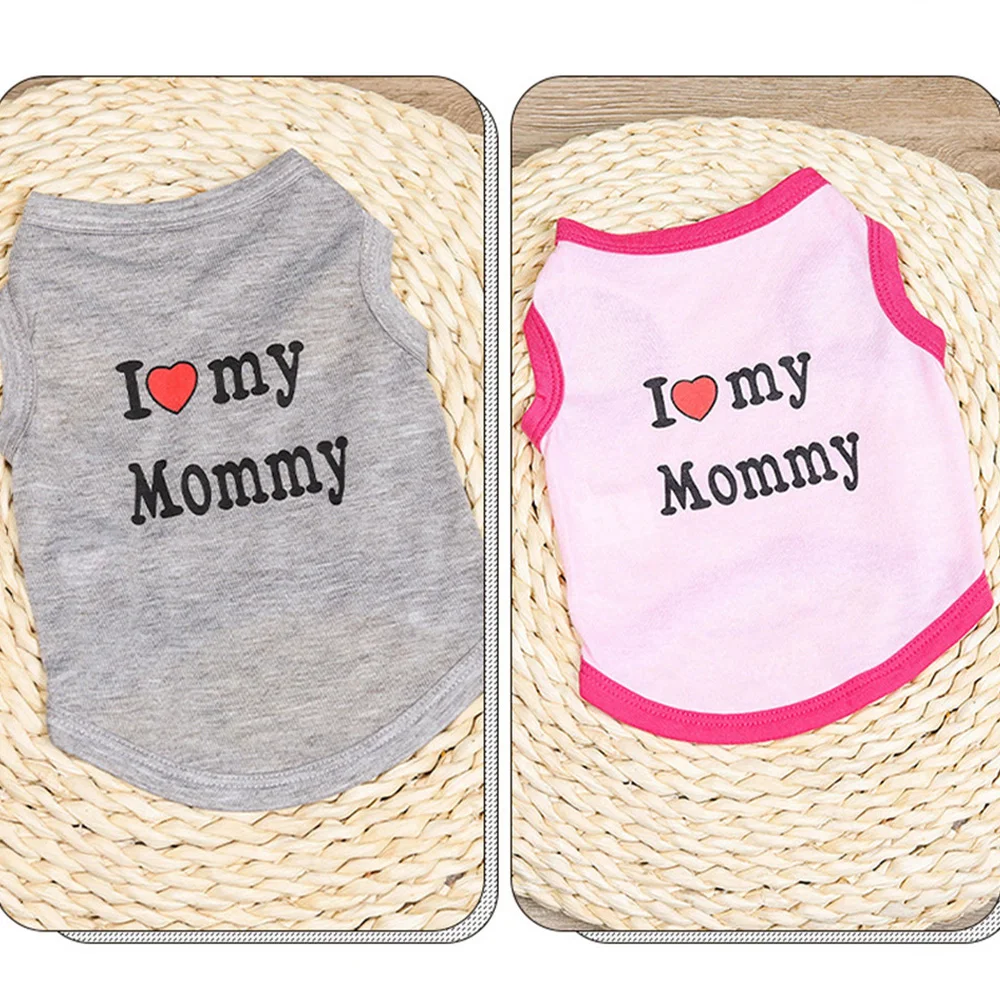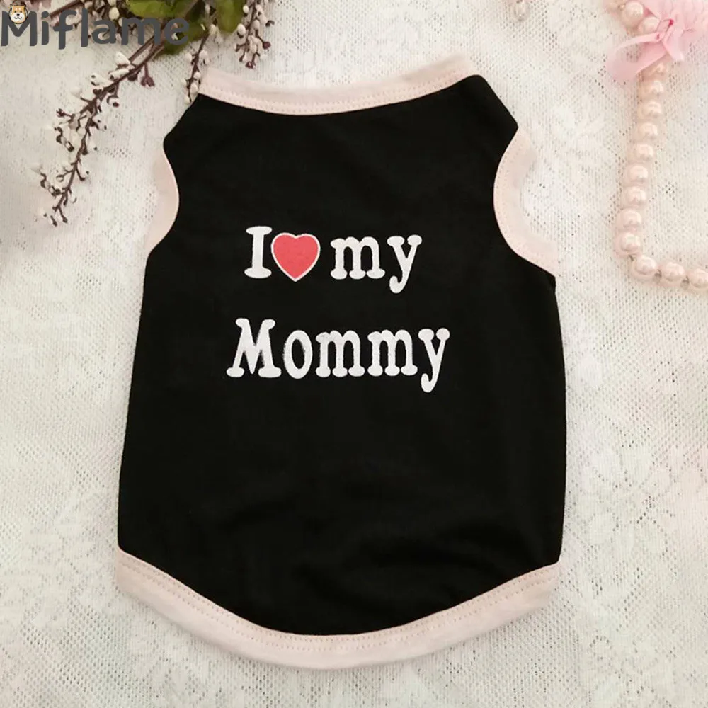 «Я люблю мамочку» и «Я люблю собак Футболка Vests летняя одежда с принтом в виде собак для домашних животных футболки своего померанского шпица Костюм Для Пуделя для щенков, милое платье без рукавов