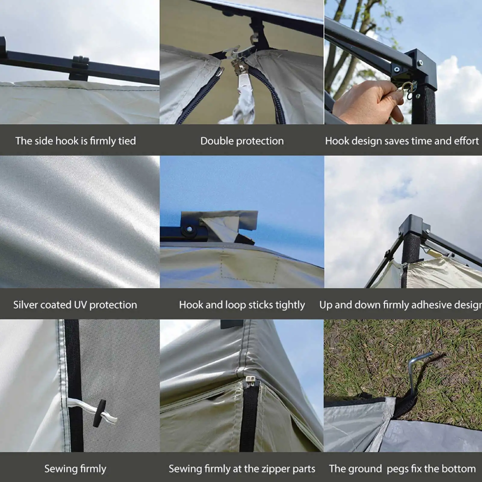 1. Серебряная ткань с покрытием 300D предотвращает попадание ультрафиолетовых лучей. Площадь палатки большая, в которой могут разместиться 3-4 человека.2. Чистая пряжа может эффективно предотвратить попадание комаров. Хороший защитный эффект.