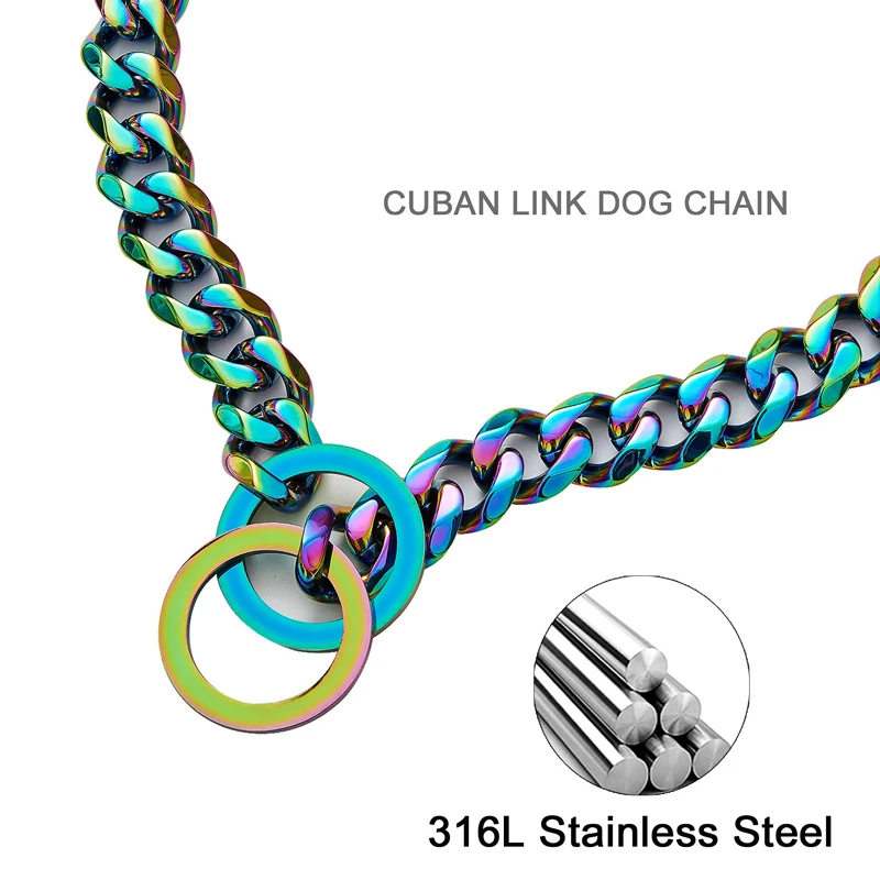 15/19 мм Ширина Титан Сталь нержавеющая P цепи для больших собак Прочный красочный гальваническое покрытие для питомцев, ошейники для защитный чехол для телефона,Что такое металлический собачий ошейник из нержавеющей стали 316L. Многоцветная цепочка из полированной нержавеющей стали с высокой прочностью и твердостью, тяжелая, прочная, не ржавеет или тускнеет, гарантируя долгий срок использования!