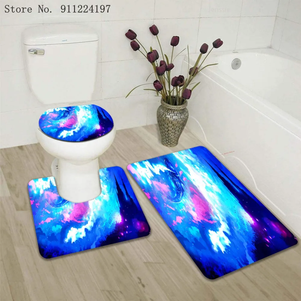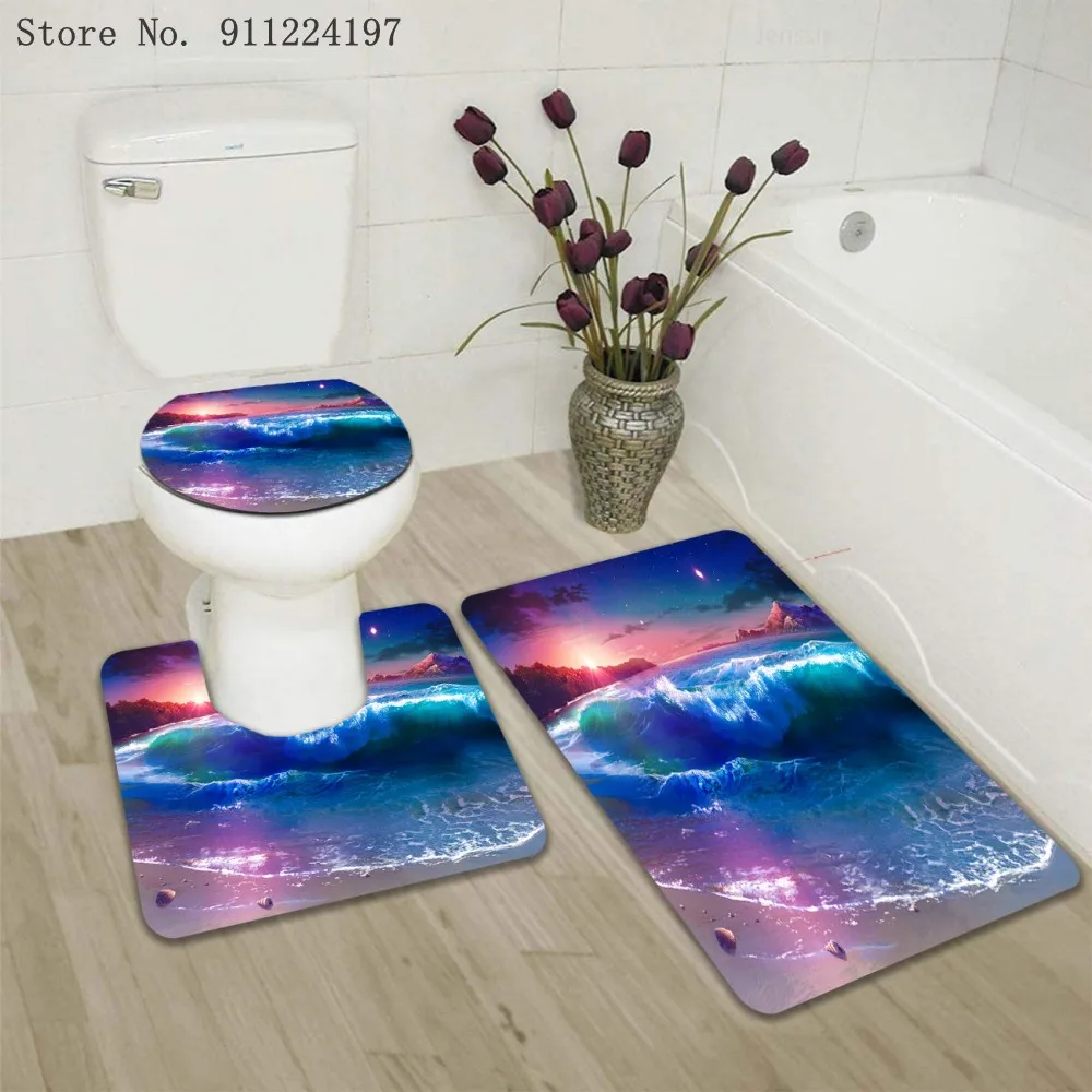 3D синий океан 3 шт. коврик для ванной набор Противоскользящий ковер коврик для ванной комнаты крышка сиденье для унитаза, коврик для ванной коврик аксессуары для унитаза
