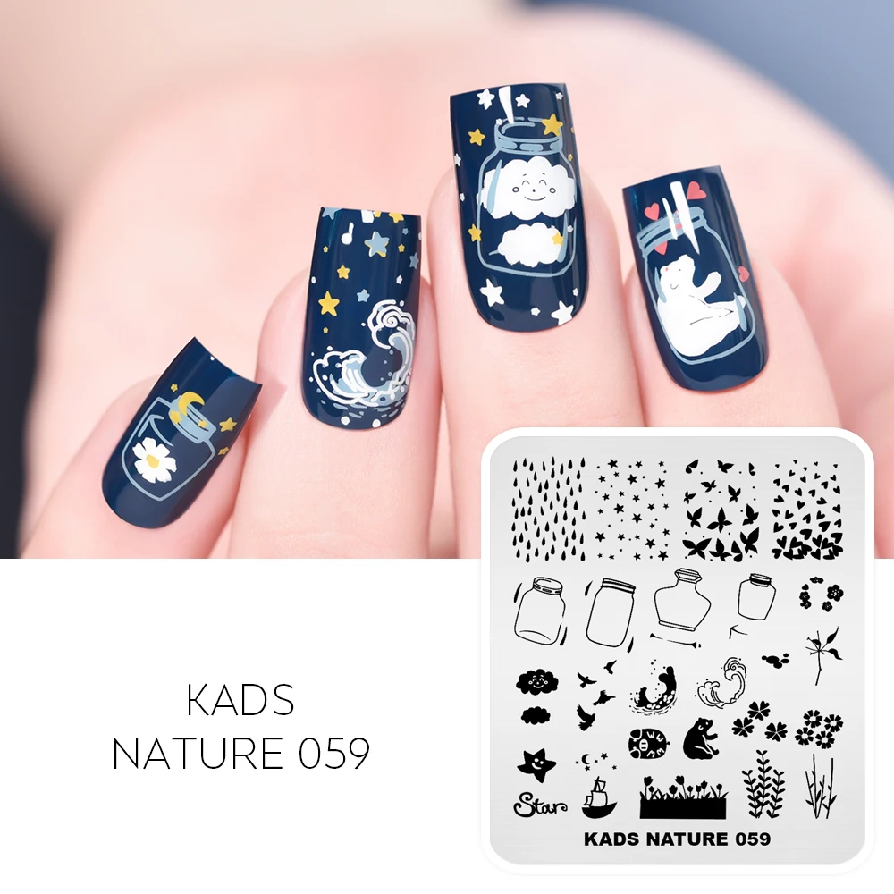 KADS природа 059 штамповка 2021 новые пластины для штамповки ногтей Чайка Морская Волна Звезды облако листья дрейфующие бутылки медведь капли дождя изображение дизайн ногтей печать трафареты инструмент