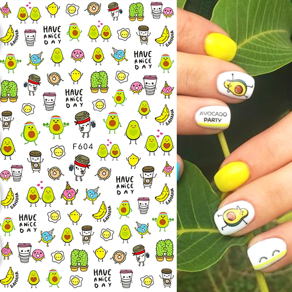 Узор: мультфильм авокадо кактус банан Прохладный Дизайн ногтей идеи для женщин