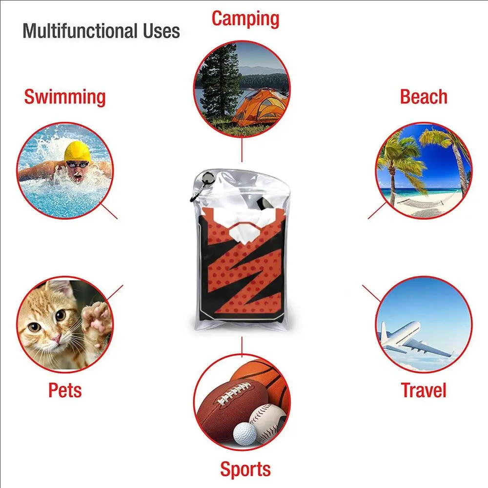 Это волшебное полотенце изготовлено из микрофибры, имеет лучшее поглощение воды, чем стандартные полотенца, и быстро сохнет. Полотенце оснащено специальным упаковочным мешком и карабином, который удобен для упаковки и подвешивания, его можно повесить в любом месте, чтобы быстро высохнуть. Светильник небольшого размера и веса, вы можете легко положить полотенце в спортивную сумку или рюкзак. Карабин на сумке может быть прикреплен или загружен в сумку. Складная конструкция, можно легко сложить в дорожную сумку, хранить в чемодане или рюкзаке. Самый подходящий подарок для любителей спорта, путешествий и приключений.