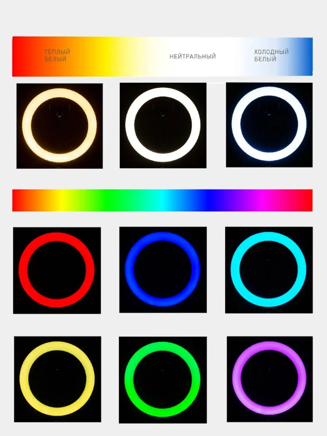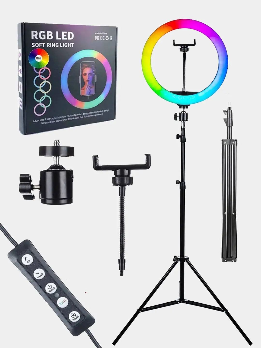 Отзывы о Лампа кольцевая 33 RGB LED SOFT RING LIGHT MJ33 (33 см) с держателем для телефона и штативом 200 см
