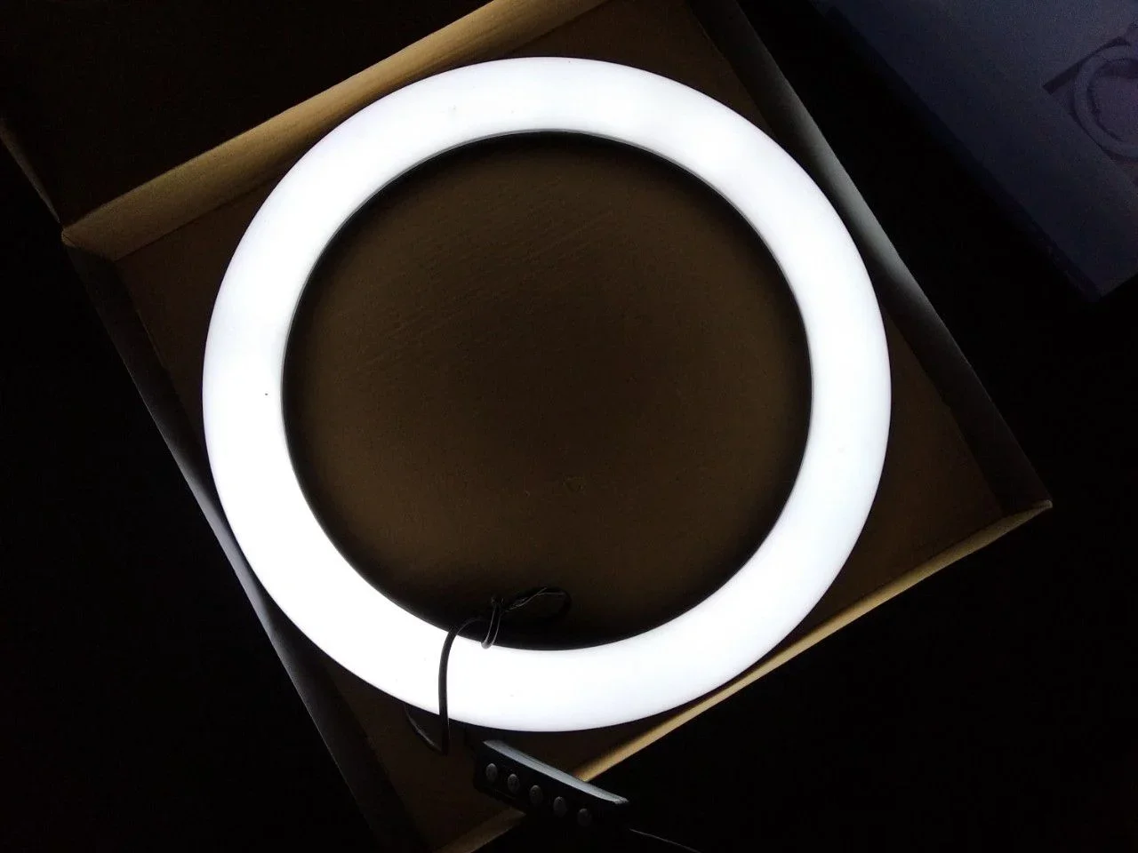 Данные качества являются немаловажными, поскольку многим фотографам необходим строго определенный цвет для создания того или иного фотоснимка. Конечно же, несомненным преимуществом является диммеры, которые позволяют регулировать температуру цвета и яркость данной кольцевой лампы дневного света.
