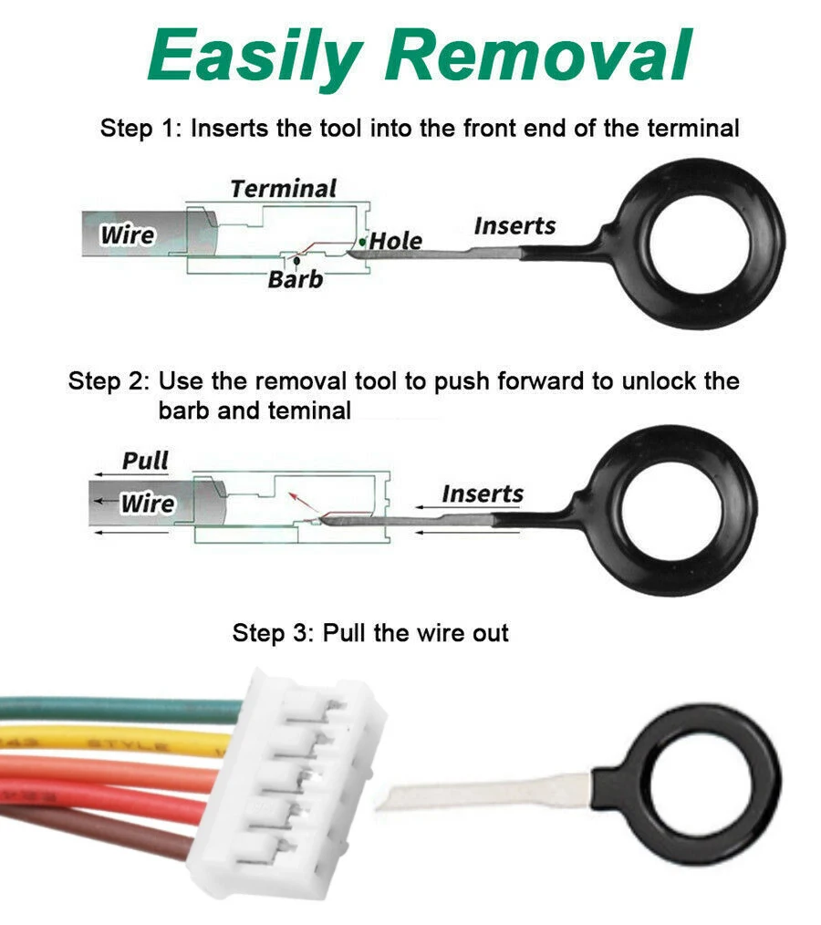 3. Совместимость: набор инструментов для удаления клемм-универсальный инструмент, подходящий для большинства разъемов.