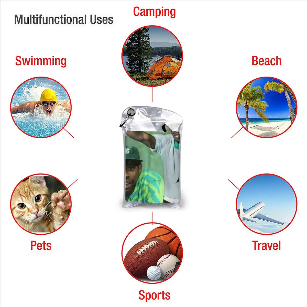 Это волшебное полотенце изготовлено из микрофибры, имеет лучшее поглощение воды, чем стандартные полотенца, и быстро сохнет. Полотенце оснащено специальным упаковочным мешком и карабином, который удобен для упаковки и подвешивания, его можно повесить в любом месте, чтобы быстро высохнуть. Светильник небольшого размера и веса, вы можете легко положить полотенце в спортивную сумку или рюкзак. Карабин на сумке может быть прикреплен или загружен в сумку. Складная конструкция, можно легко сложить в дорожную сумку, хранить в чемодане или рюкзаке. Самый подходящий подарок для любителей спорта, путешествий и приключений.