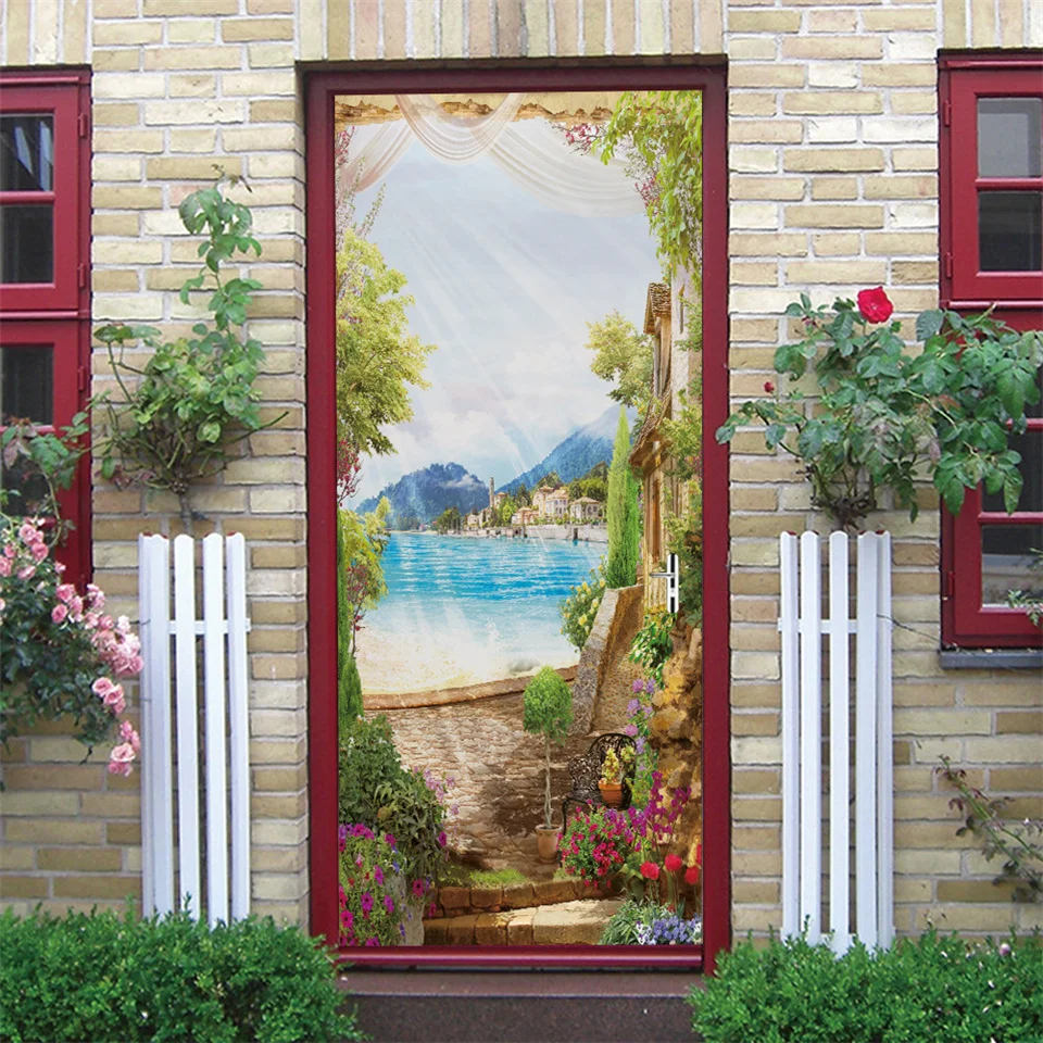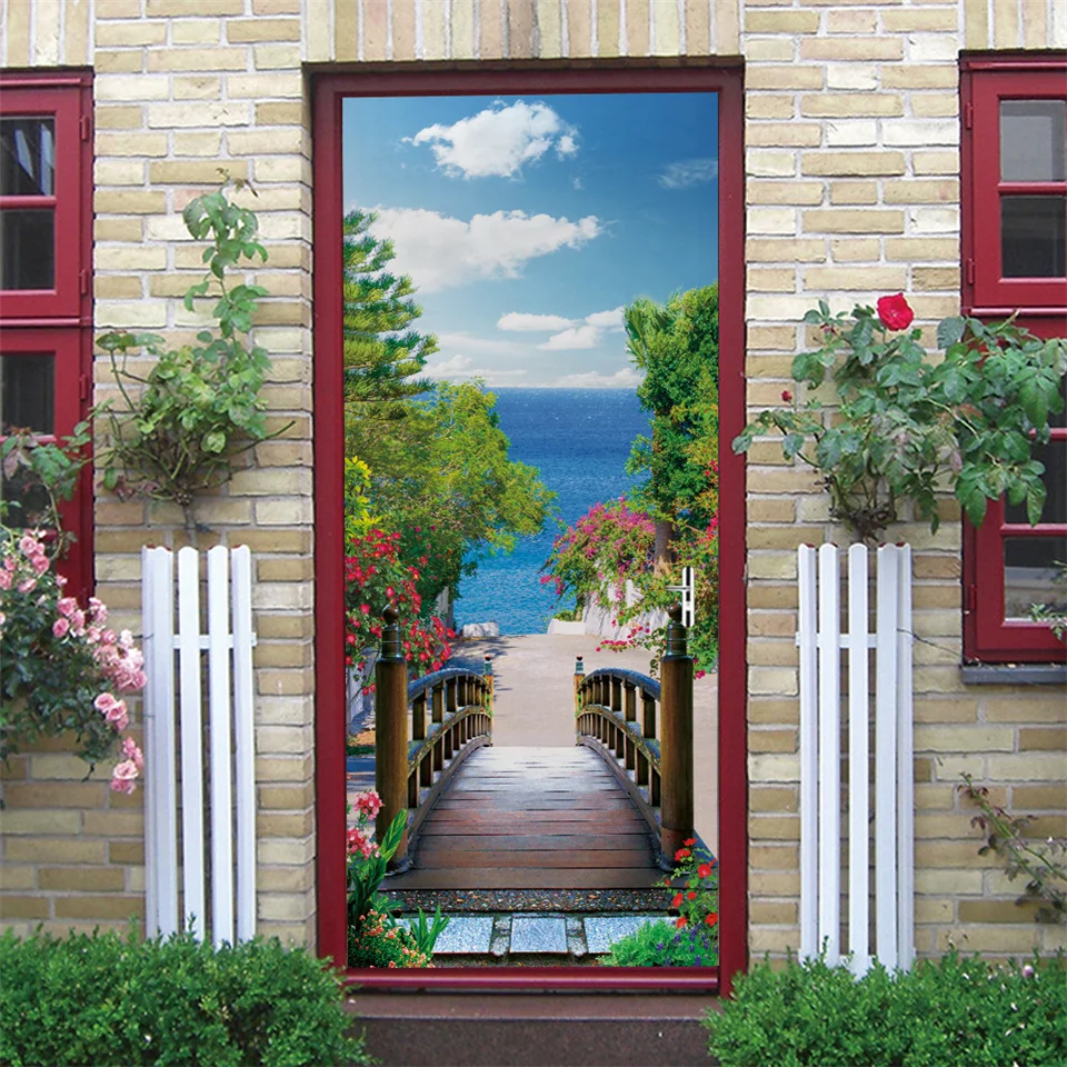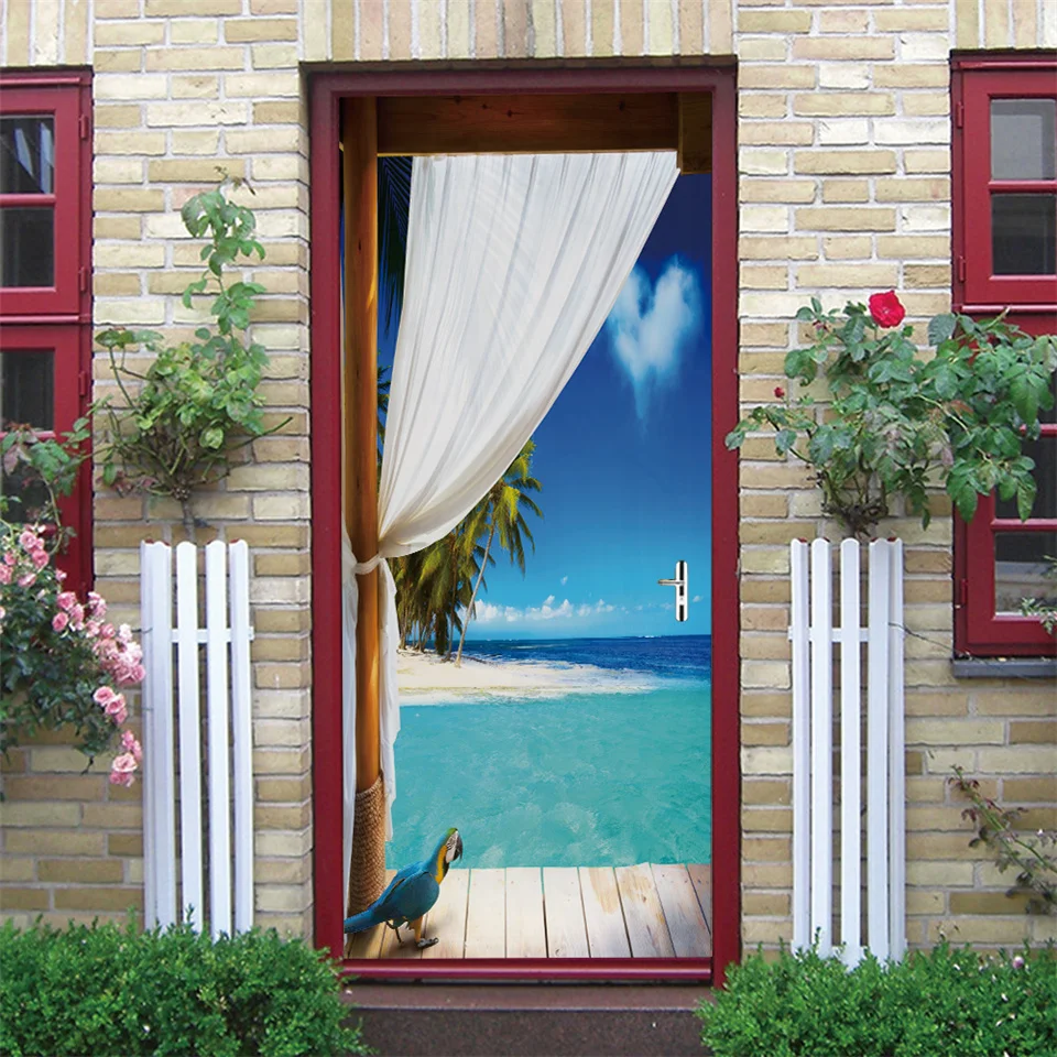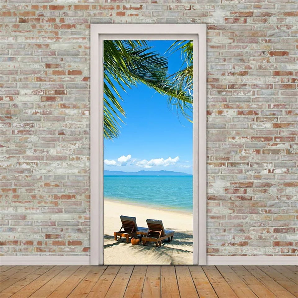 2pcs/Set 3D Wallpaper For Door Sticker Self-adhesive DIY Poster Beach Sea Scenery Mural Home Design Door Decoration Decal stickers porte