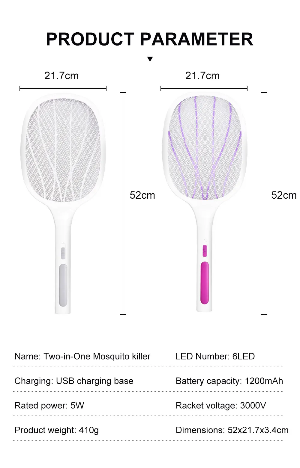 Название: два в одном москитный убийца Особенности: лампа-убийца комаров + москитная щатетка светодиодный номер: 6 светодиодный/10 светодиодный Зарядка: USB Зарядная база Емкость аккумулятора: 1200 мАч Номинальная мощность: напряжение ракетки 5 Вт: 3000 в