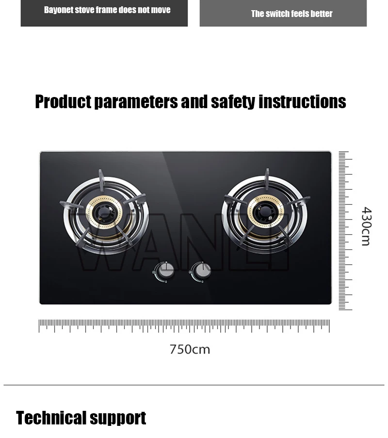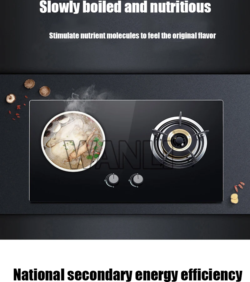 Газовая плита, микрокристаллическая панель, двойная головка, жесткая плита, бытовая Встроенная газовая плита, природный газ/сжиженный нефтяной газ, газовая плита